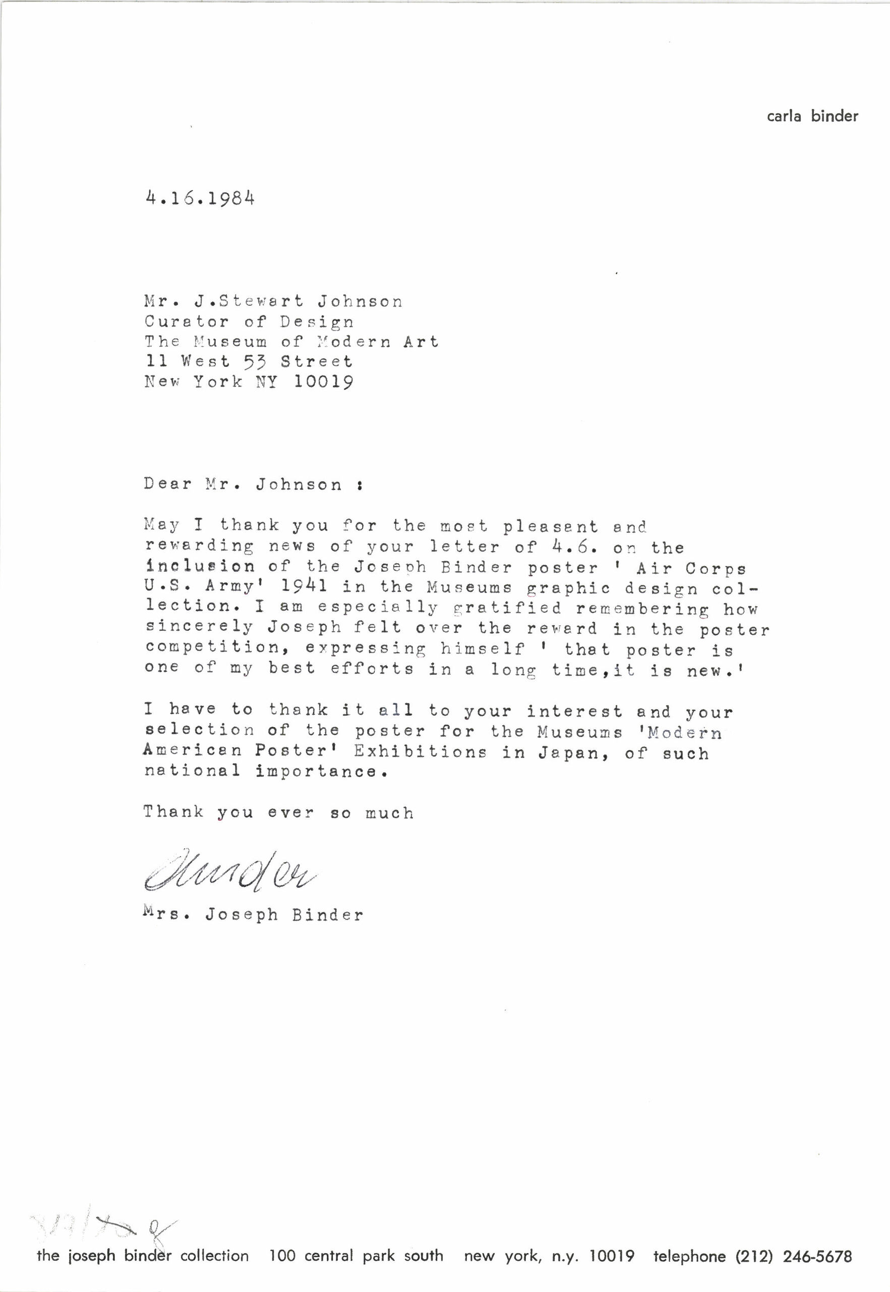 Transkription, Brief an das "The Museum of Modern Art" in New York, Carla Binder, MAK Inv.nr. KI 14145-817-7