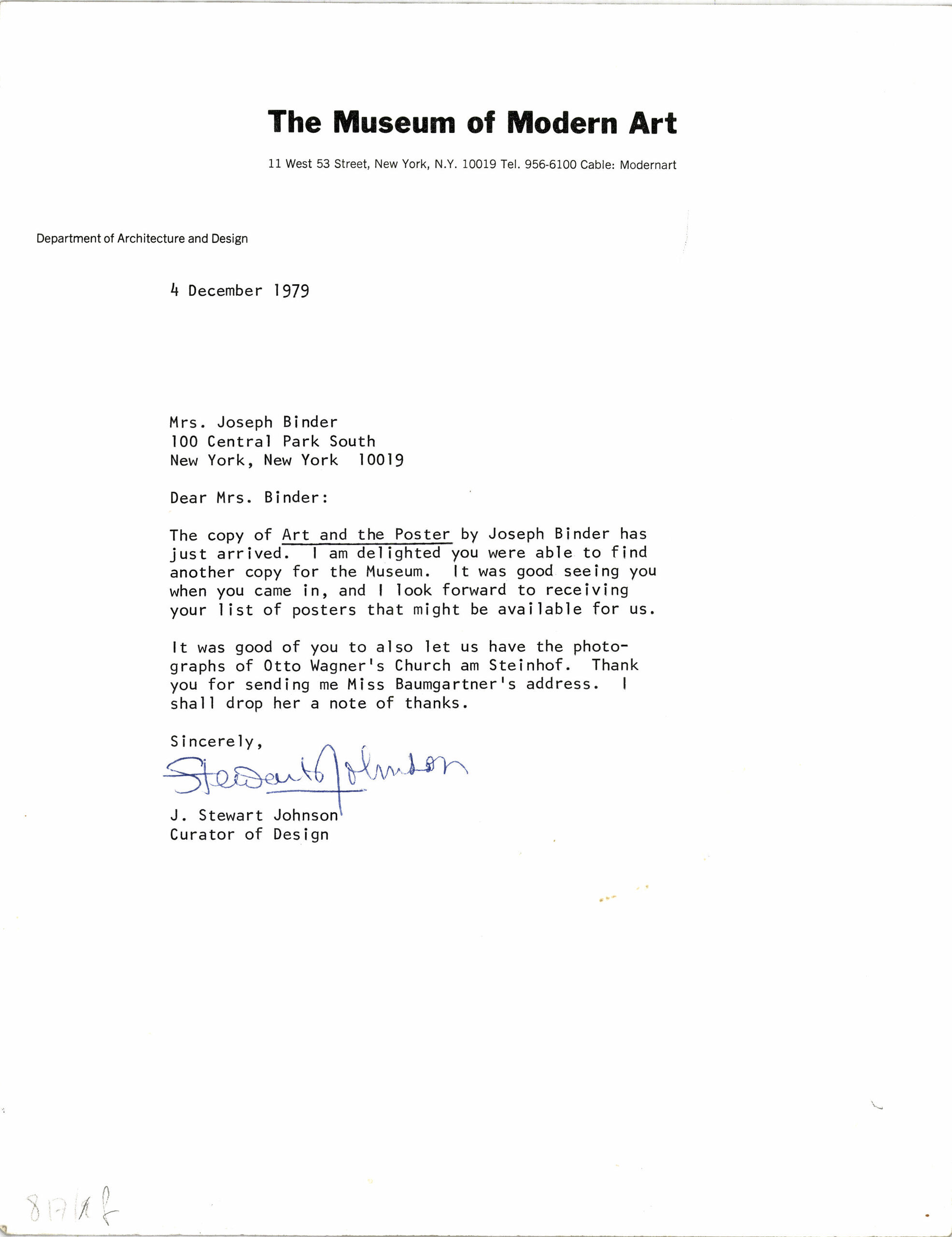 Korrespondenz, Brief vom "The Museum of Modern Art" in New York, J. Stewart Johnson, MAK Inv.nr. KI 14145-817-6