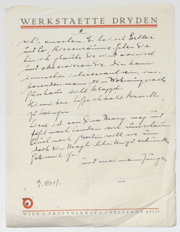 Korrespondenz, Brief von Ernst Deutsch-Dryden an Hello, Ernst Deutsch-Dryden, MAK Inv.nr. KI 15964-57-3