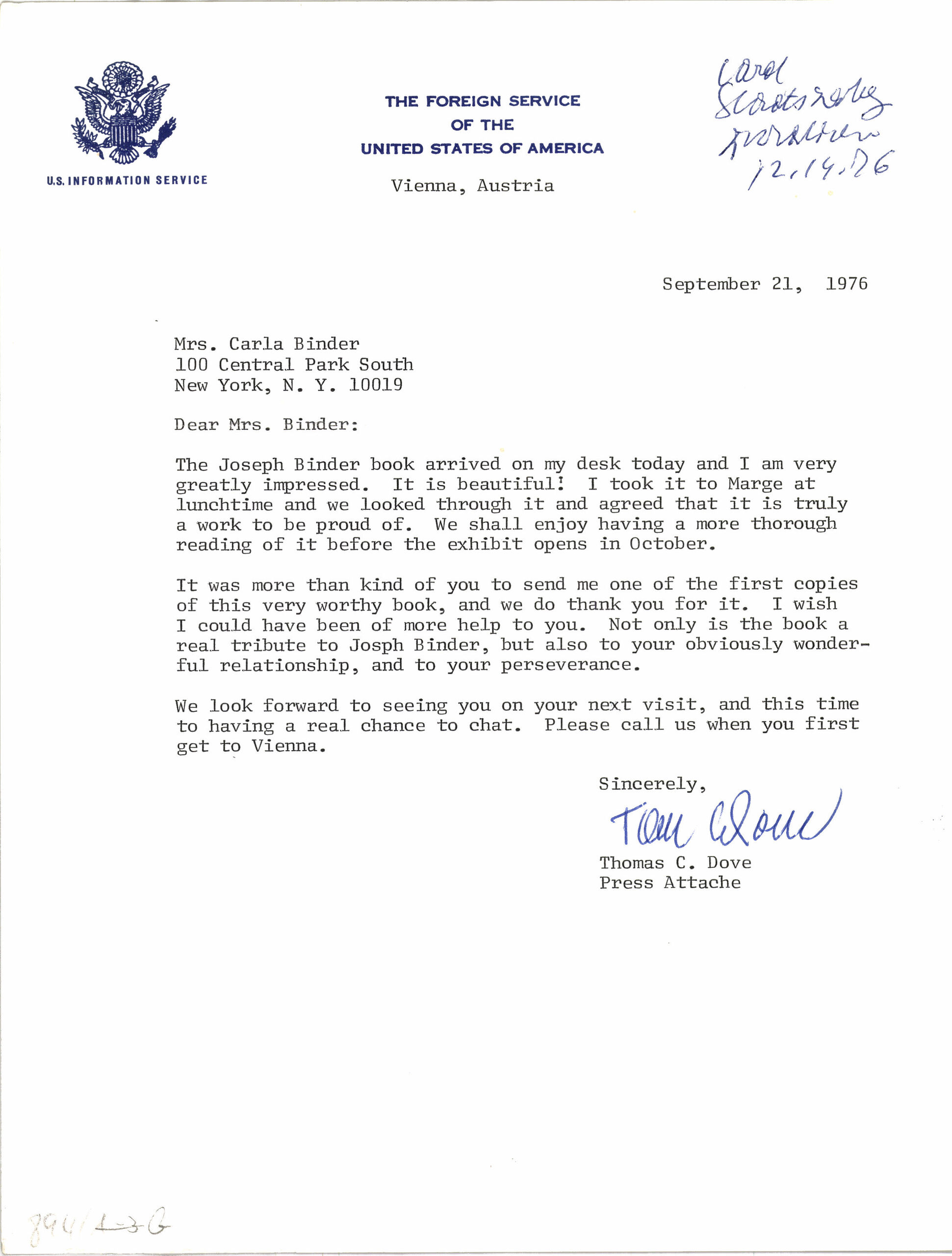 Korrespondenz, Brief von Thomas C. Dove ("The Foreign Service of the United States of America"), Thomas C. Dove, MAK Inv.nr. KI 14145-894-2