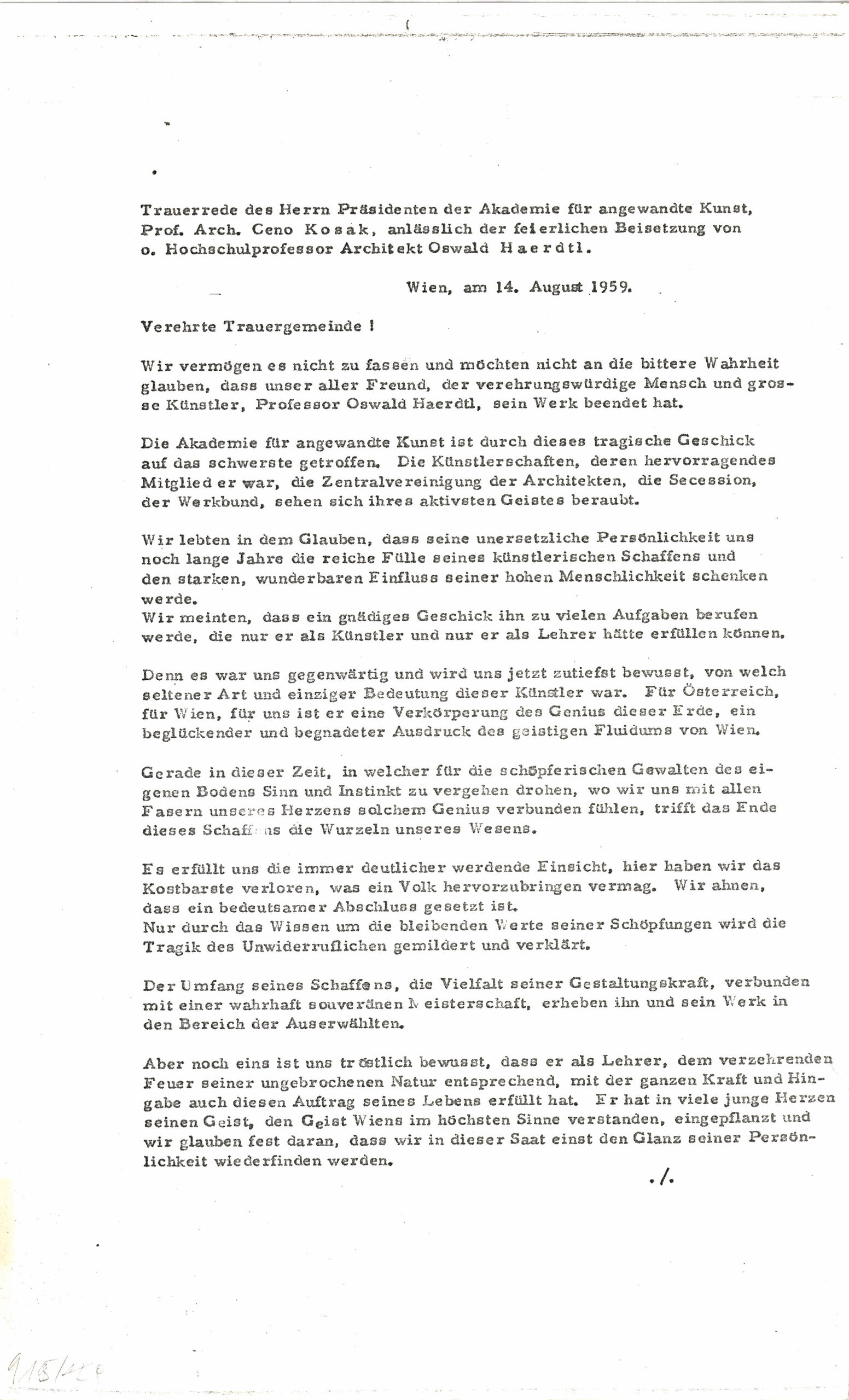 - Brief zum Tod Oswald Haerdtls (vom Bearbeiter vergebener Titel)