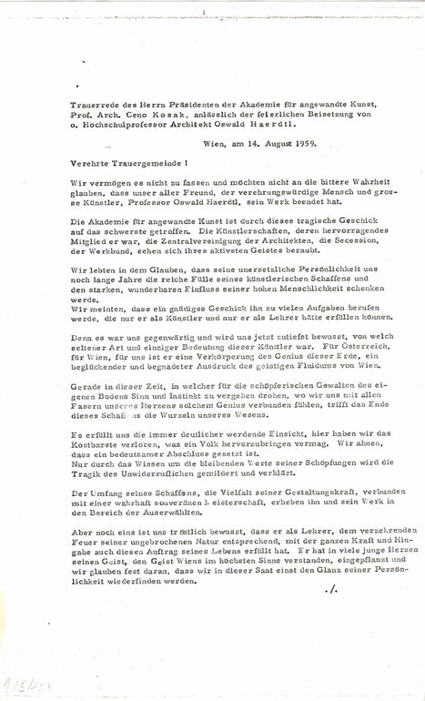 - Brief zum Tod Oswald Haerdtls (vom Bearbeiter vergebener Titel)