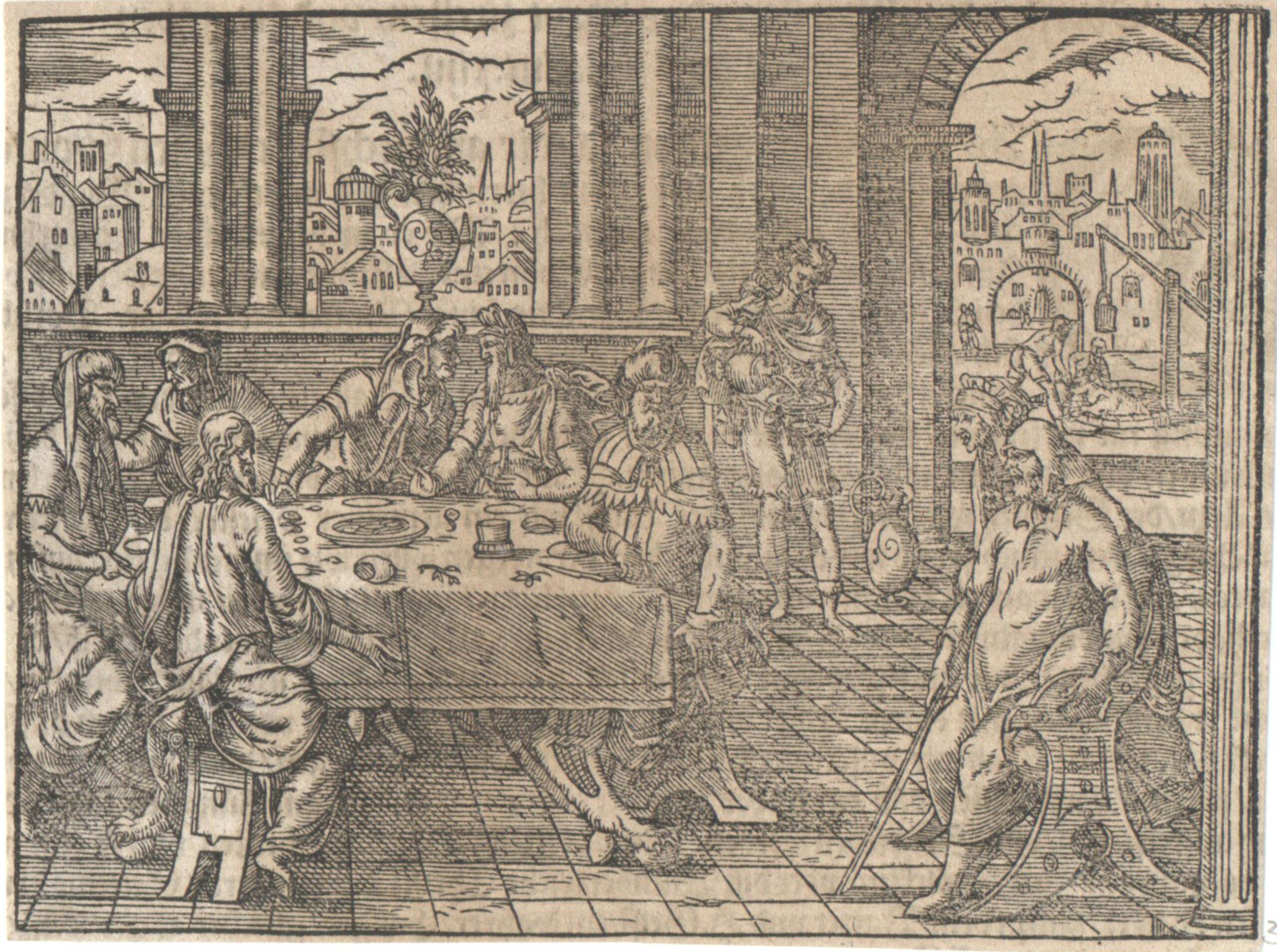 - Buchillustration aus: Postilla Catholica Evangeliorum de Sanctis totius Anni. Durch Jacobum Feuchthium. Köln 1580. (vom Bearbeiter vergebener Titel)