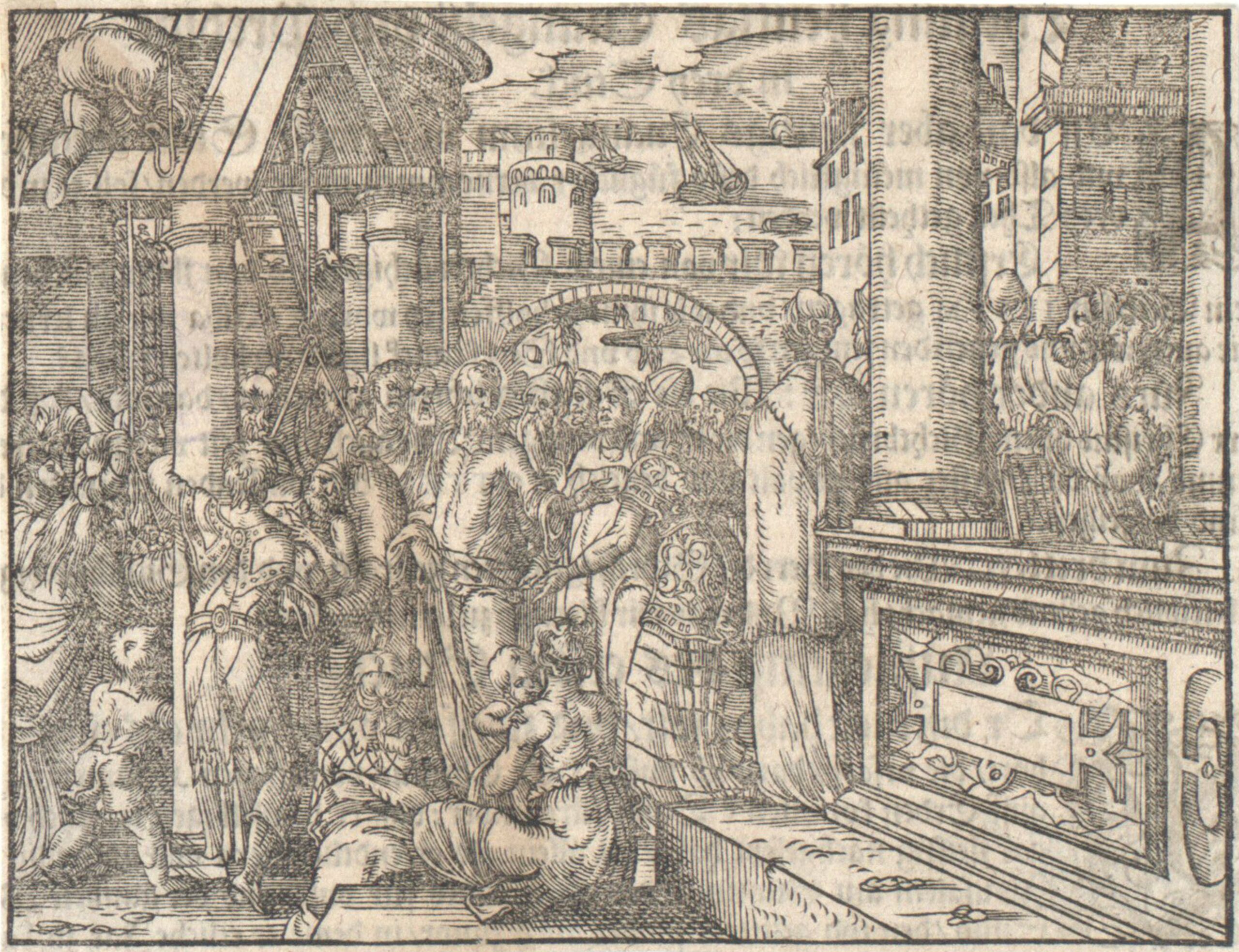 Buchillustration, Buchillustration aus: Postilla Catholica Evangeliorum de Sanctis totius Anni. Durch Jacobum Feuchthium. Köln 1580., Hans Hersbach, MAK Inv.nr. KI 4086-36