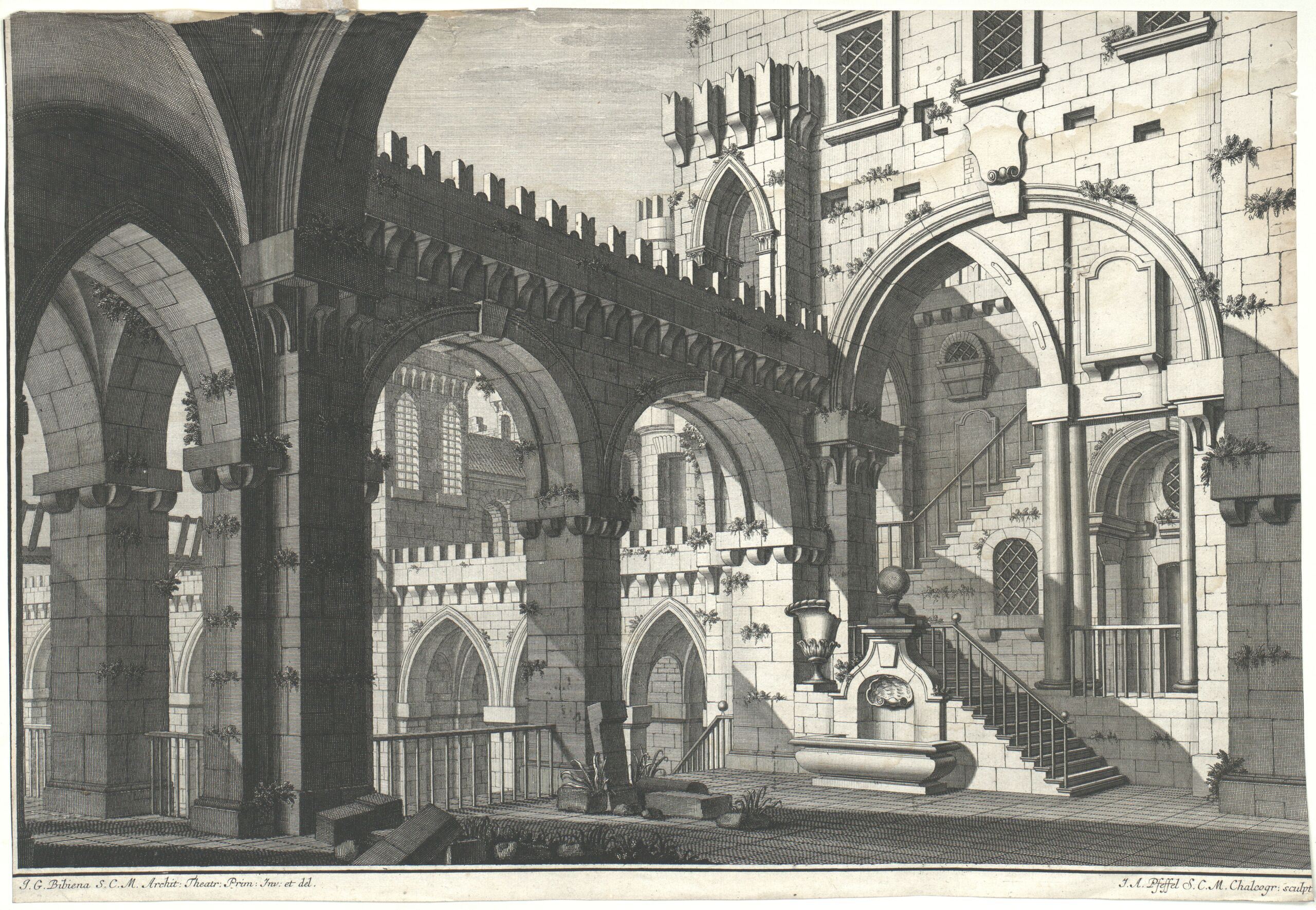 - Text am Objekt: I. G. Bibiena S. C. M. Archit. Theatr. Prim. Inv. et del. / I. A. Pfeffel S. C. M. Chalcogr. sculpt.