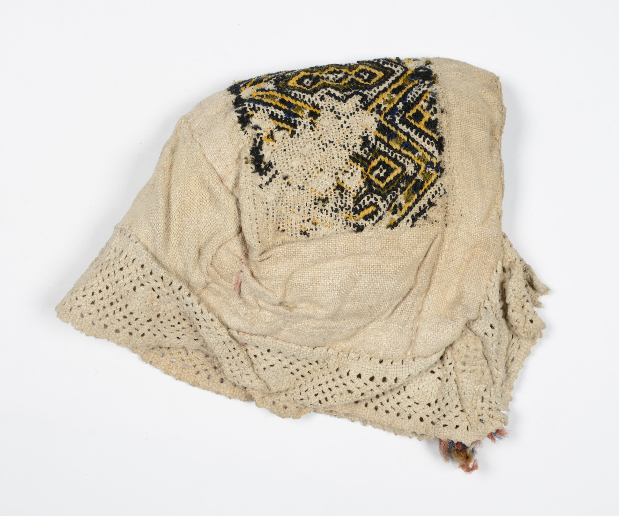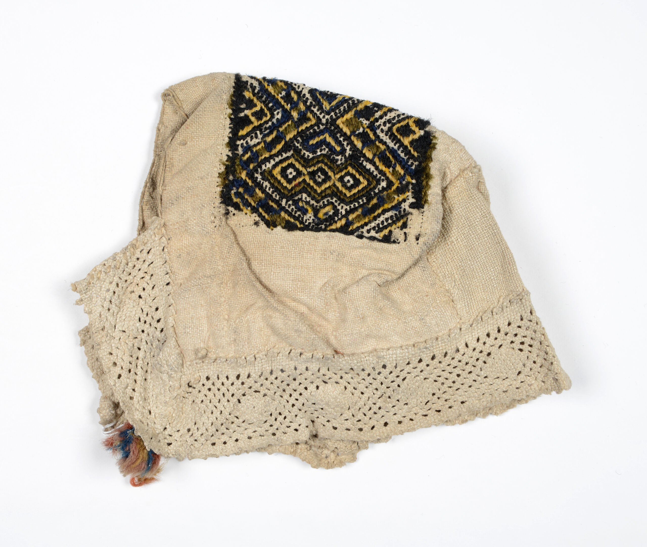 Haube, Bunt bestickte Haube mit Spitzenbesatz aus der Sammlung Kršnjavi, Anonym, MAK Inv.nr. T 3302-163