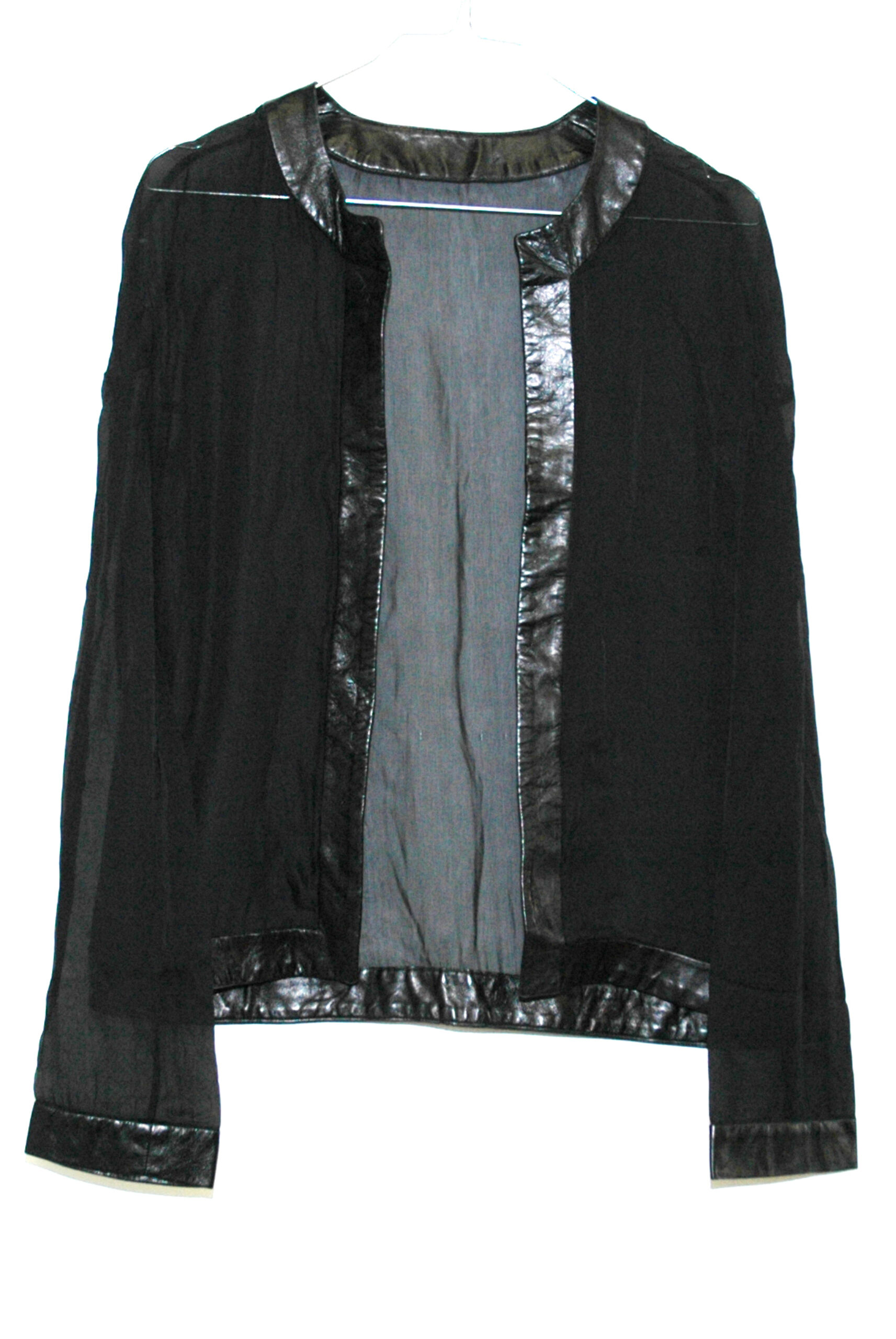 - Cardigan mit Kantenbesatz aus Leder - schwarz (deskriptiver Titel)