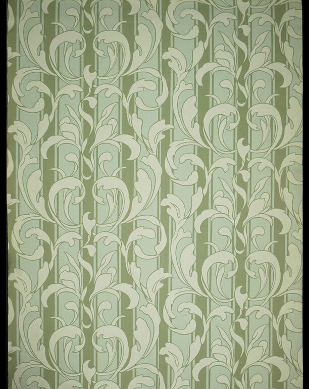- Helle Blatt- und Blütenranken mit gebogenen Hörner, auf gelbgrünem Grund (deskriptiver Titel)