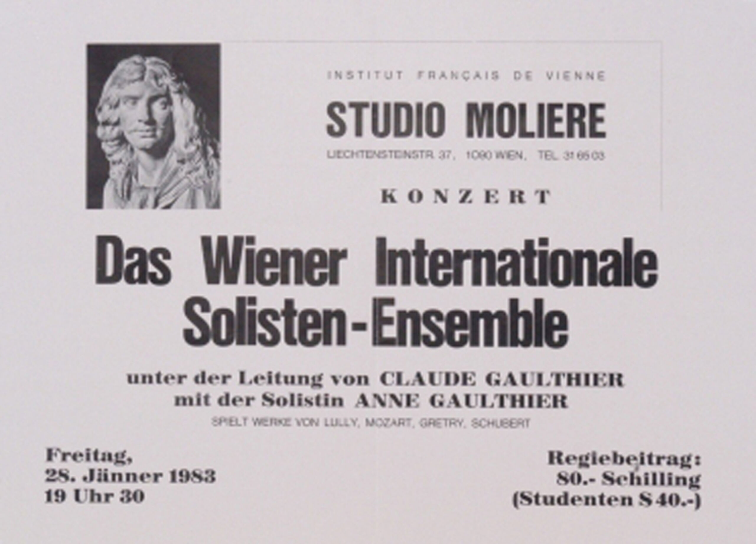- Text am Objekt: Das Wiener Internationale Solisten Ensemble. Institut Francais de Vienne, Studio Moliere, Wien IX. Leitung: Claude Gaulthier. 28. Jänner 1983