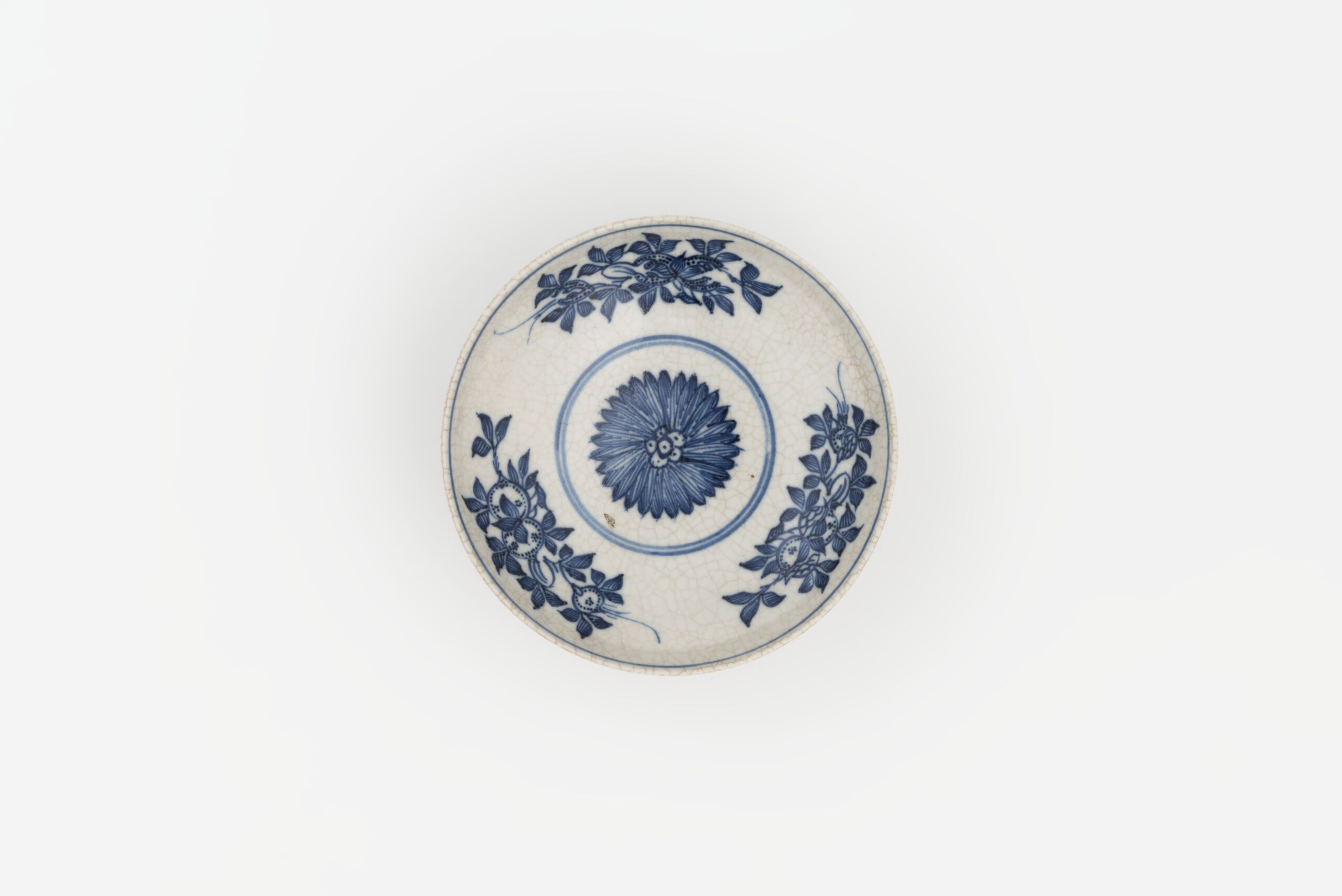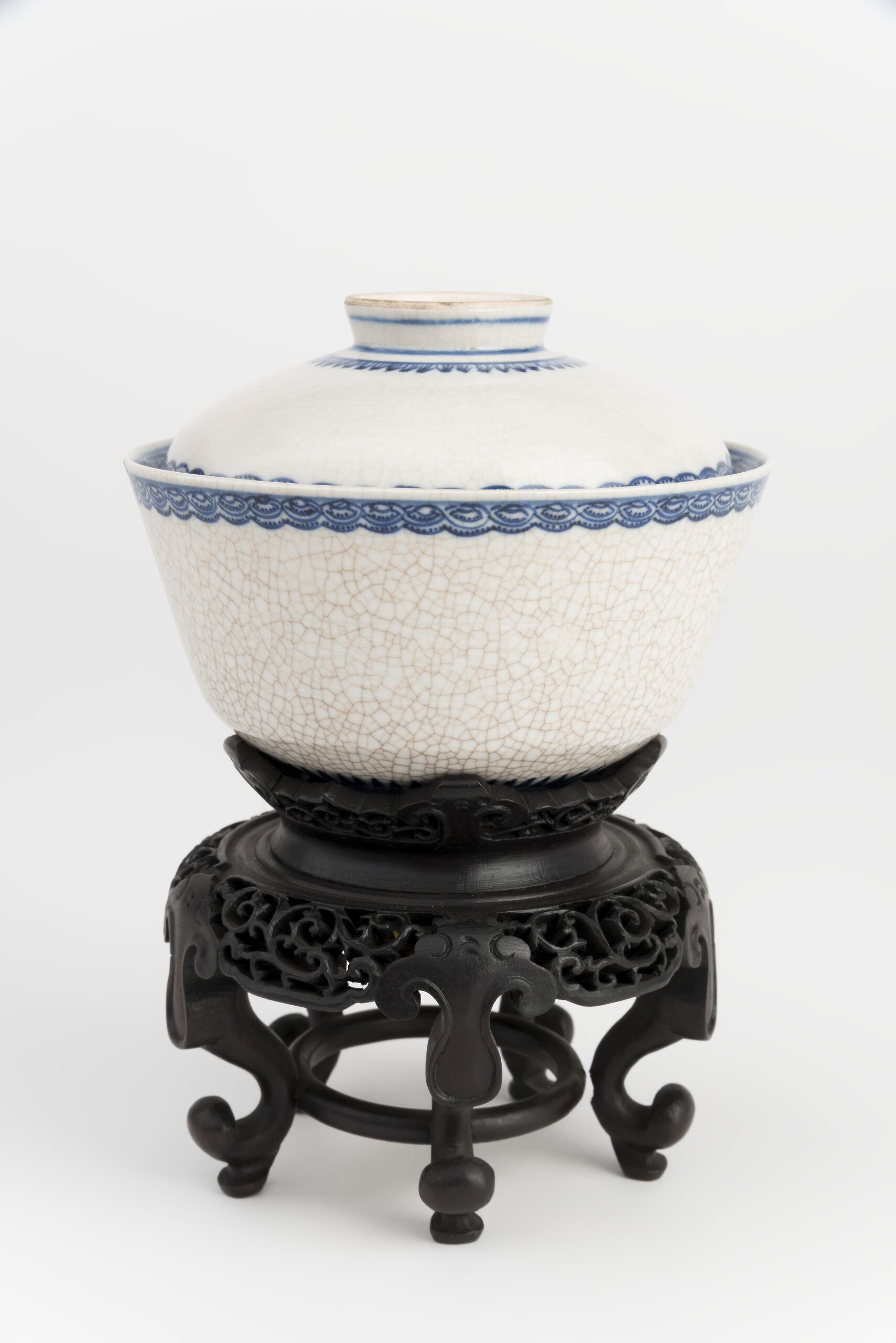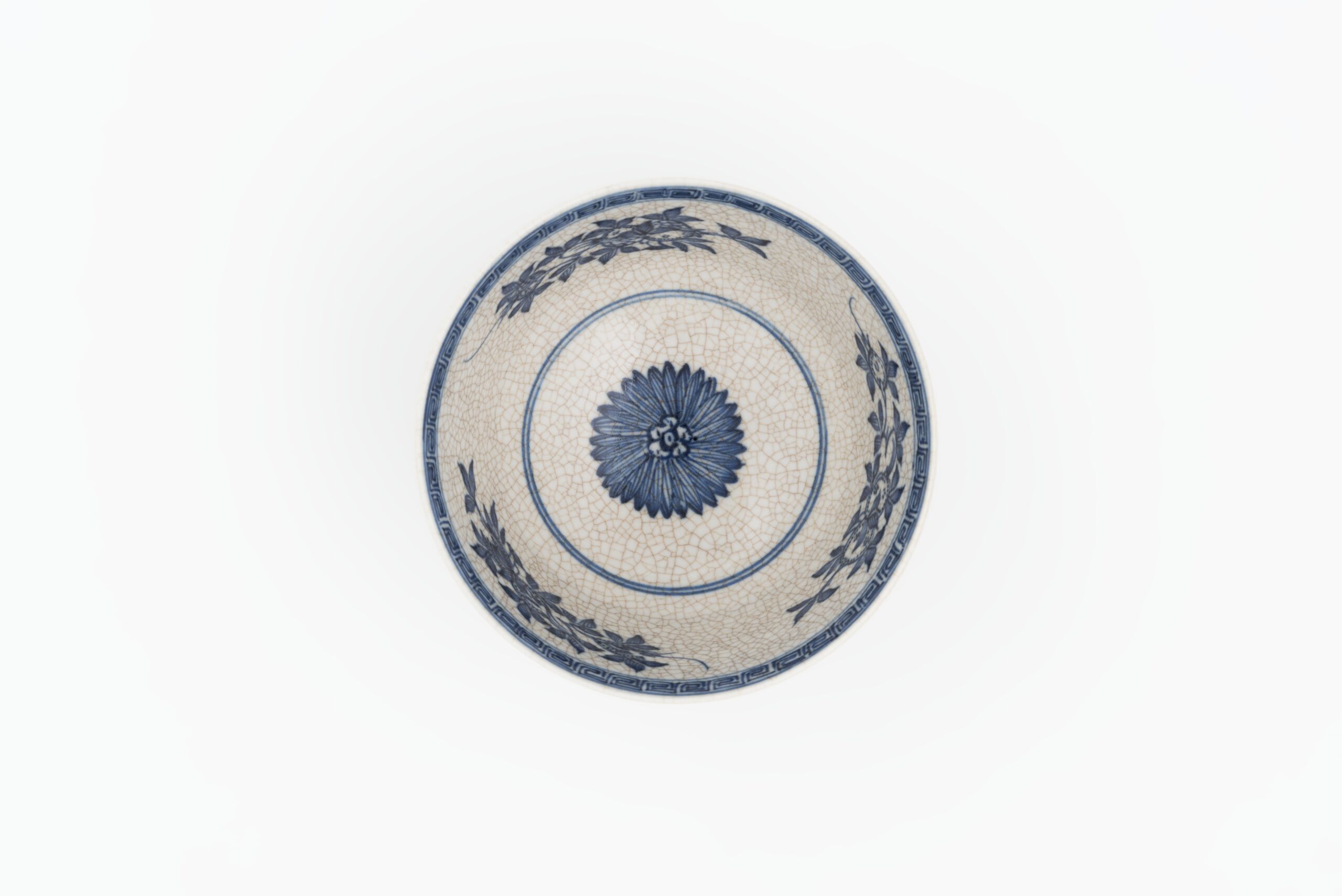 Porzellan mit Bemalung in Kobaltblau unter krakelierter Glasur