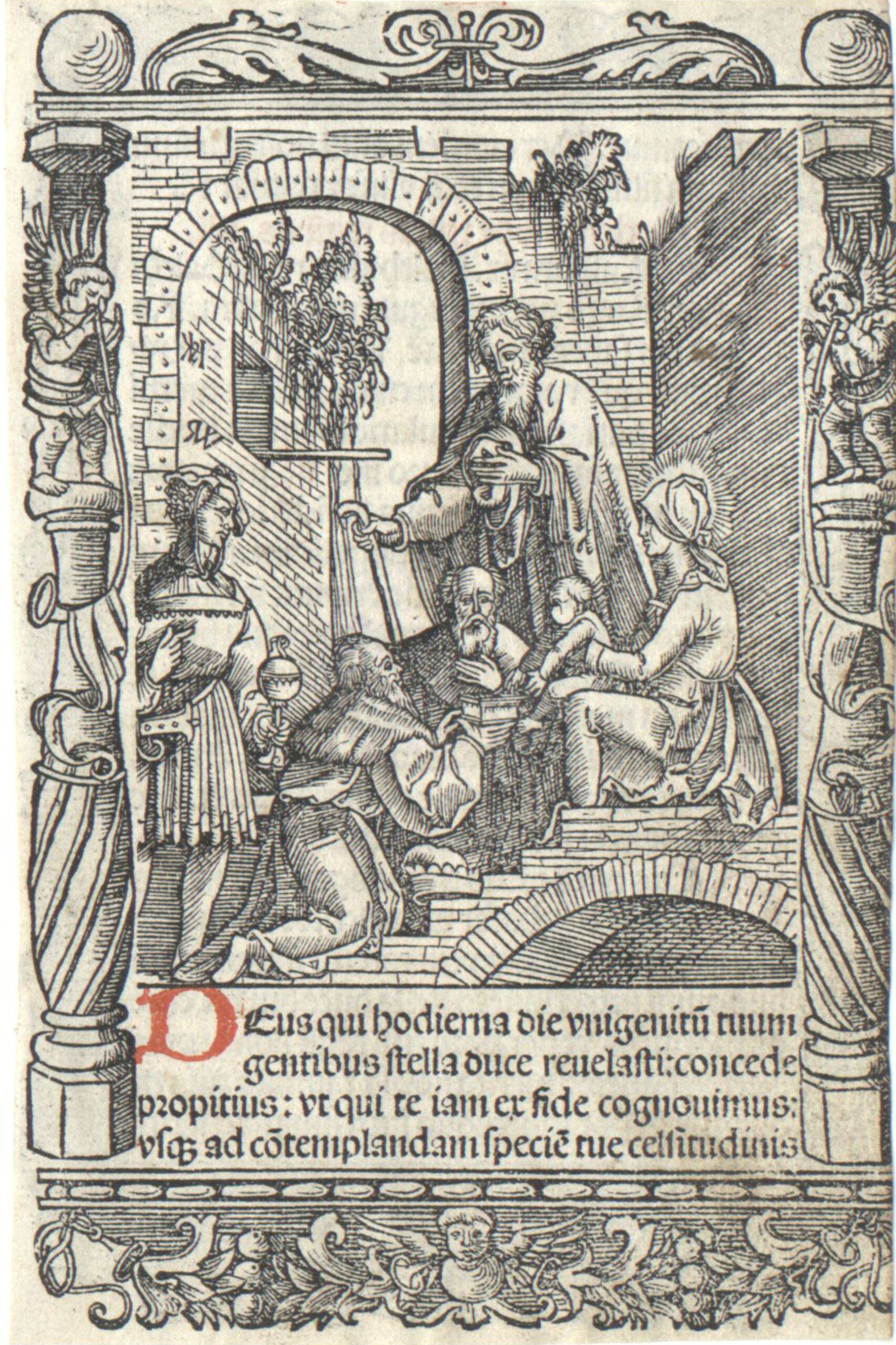 Buchillustration, Die Heiligen drei Könige in ornamentalem Rahmen, Blatt aus einem Gebetbuch, Hans Springinklee, MAK Inv.nr. KI 2943-28