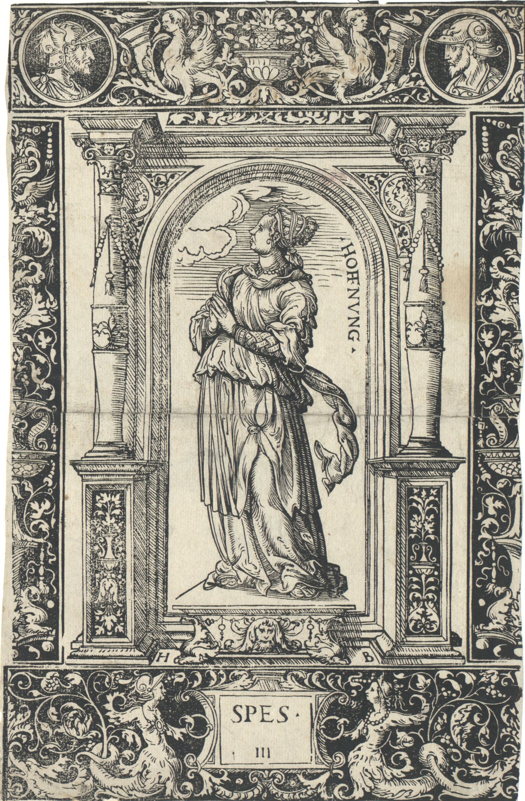 Ornamentstich, Die Hoffnung aus der Folge der sieben Tugenden, Hans Burgkmair(1500), MAK Inv.nr. KI 987