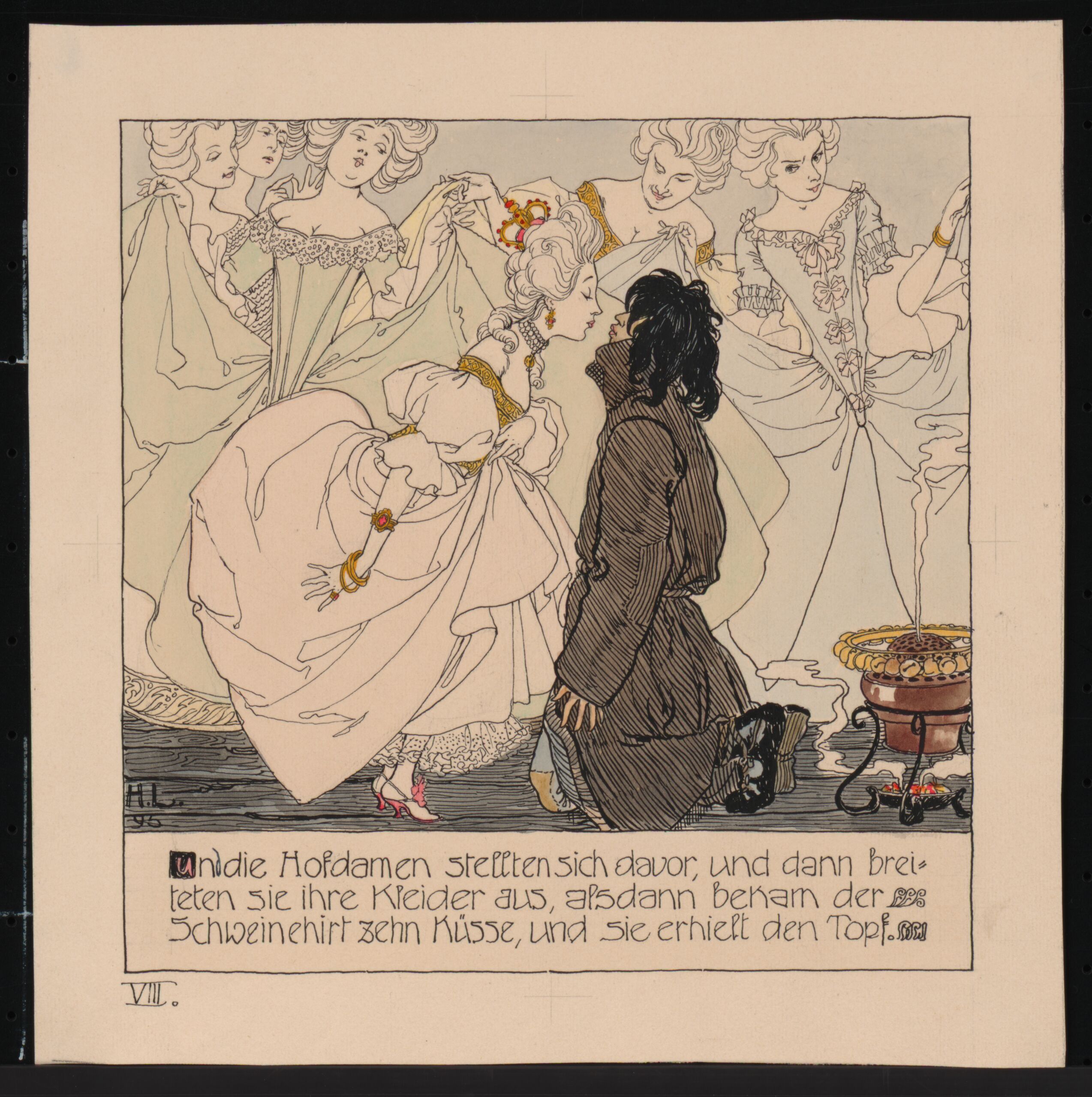 ausgeführter Entwurf zu Hans Christian Andersen: "Die Prinzessin und der Schweinehirt", 1895, Seite 8