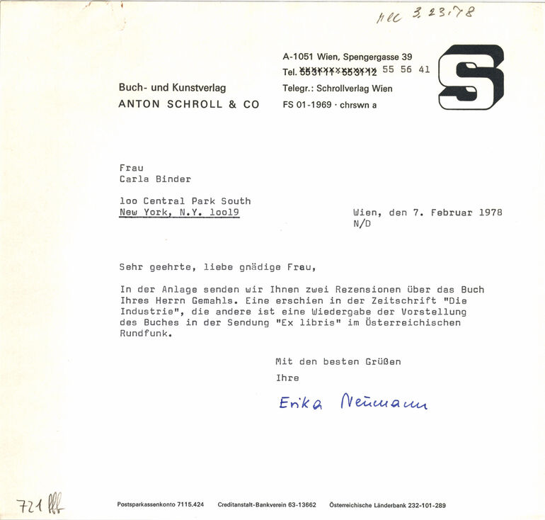 - Aussteller: Carla Binder, USA, vor 1978