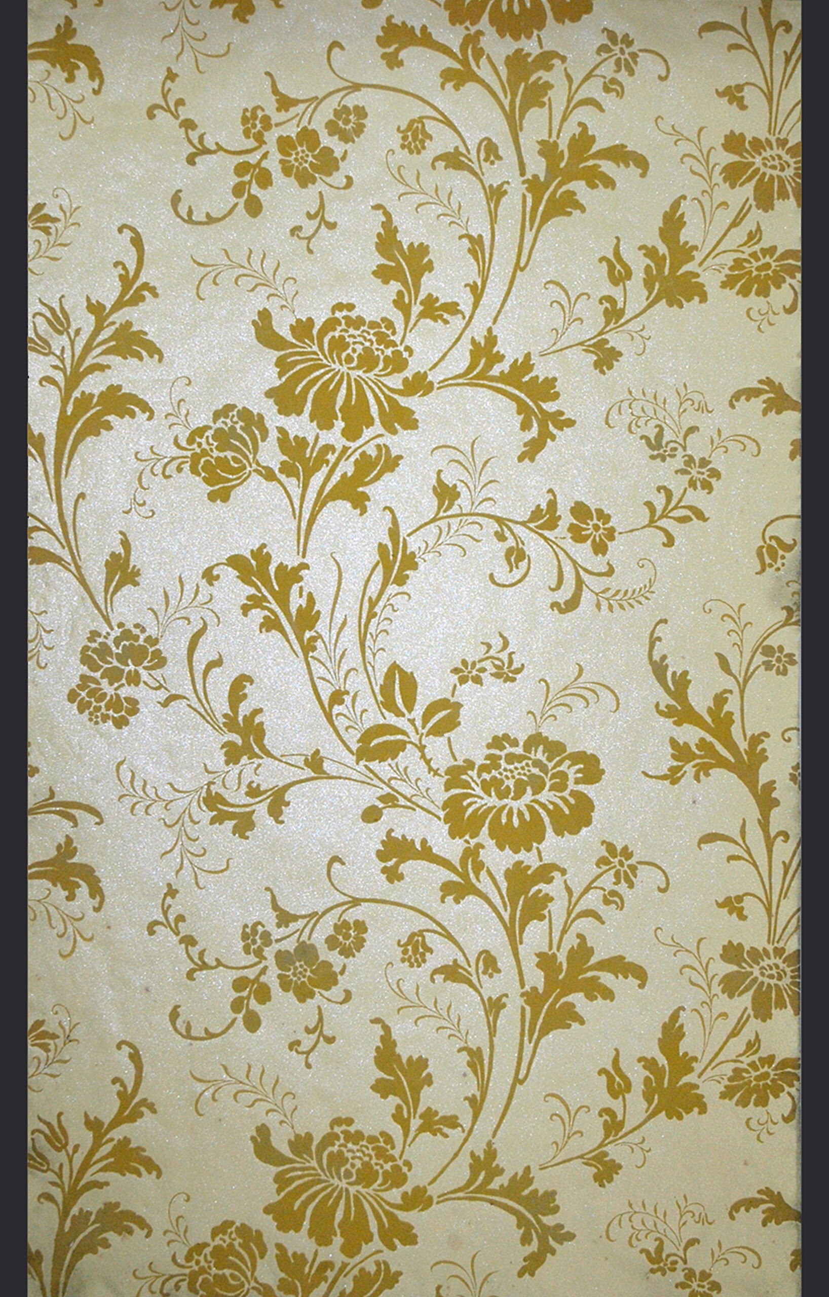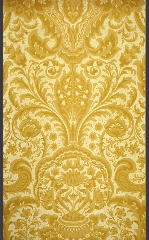 - Zarte, wellenförmige Blattranken mit großen Blüten, gelb auf weißem Grund (deskriptiver Titel)
