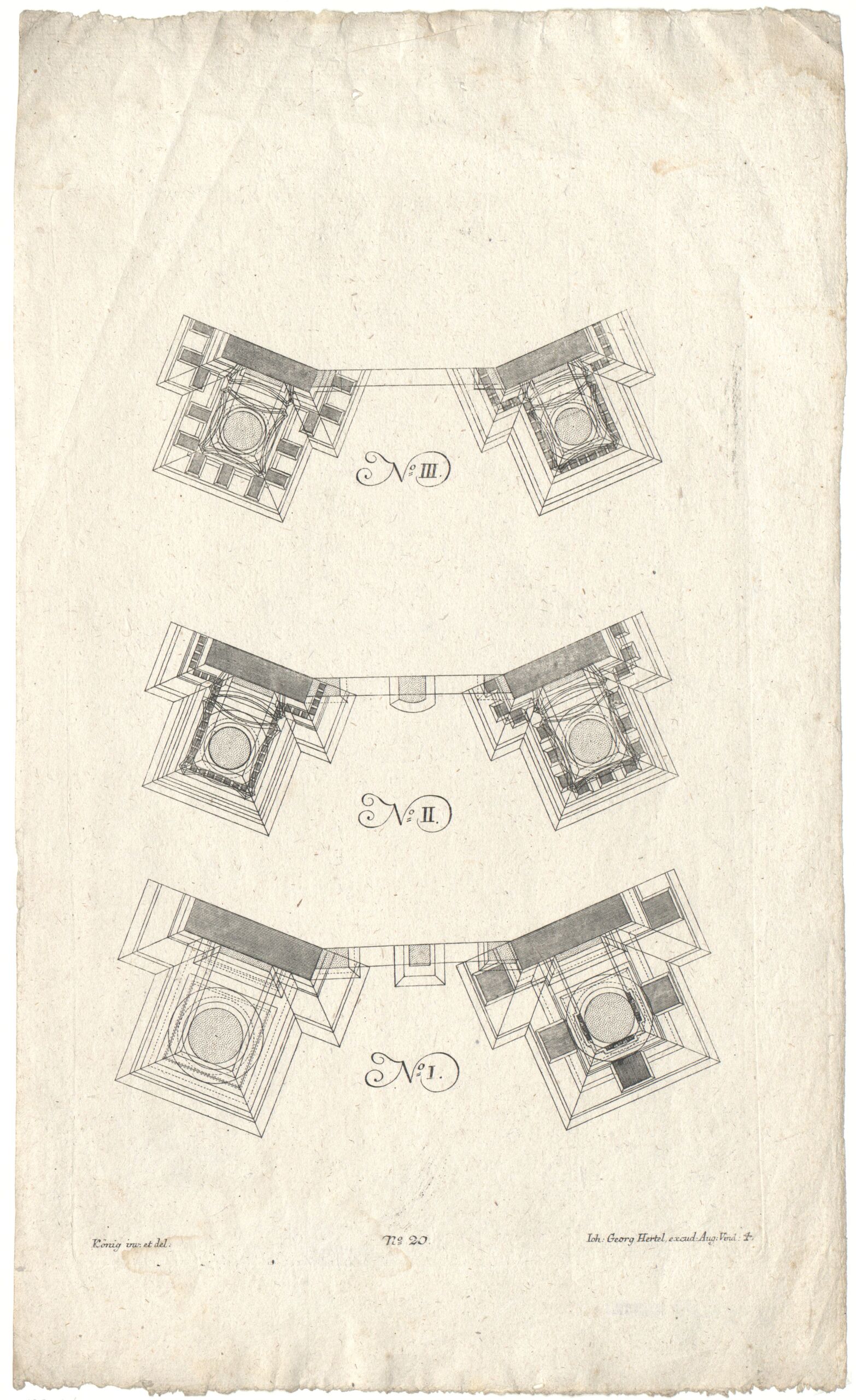 - Text am Objekt: N.o III, N.o II, N.o I / König inv. et del. / Ioh. Georg Hertel excud. Aug. V. / N.o 20 / 4