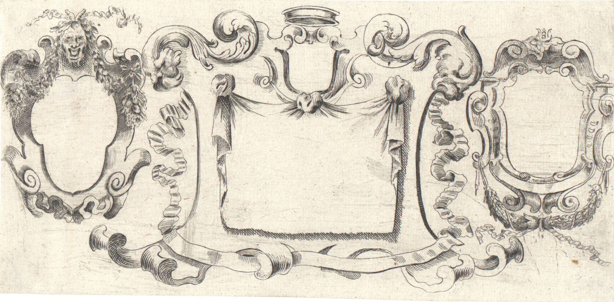 Ornamentstich, Drei Kartuschen, Blatt aus der Folge „Schüldtbüchlain“, herausgegeben von Andreas Reich, Hans Martin Winterstein, MAK Inv.nr. KI 3743-3