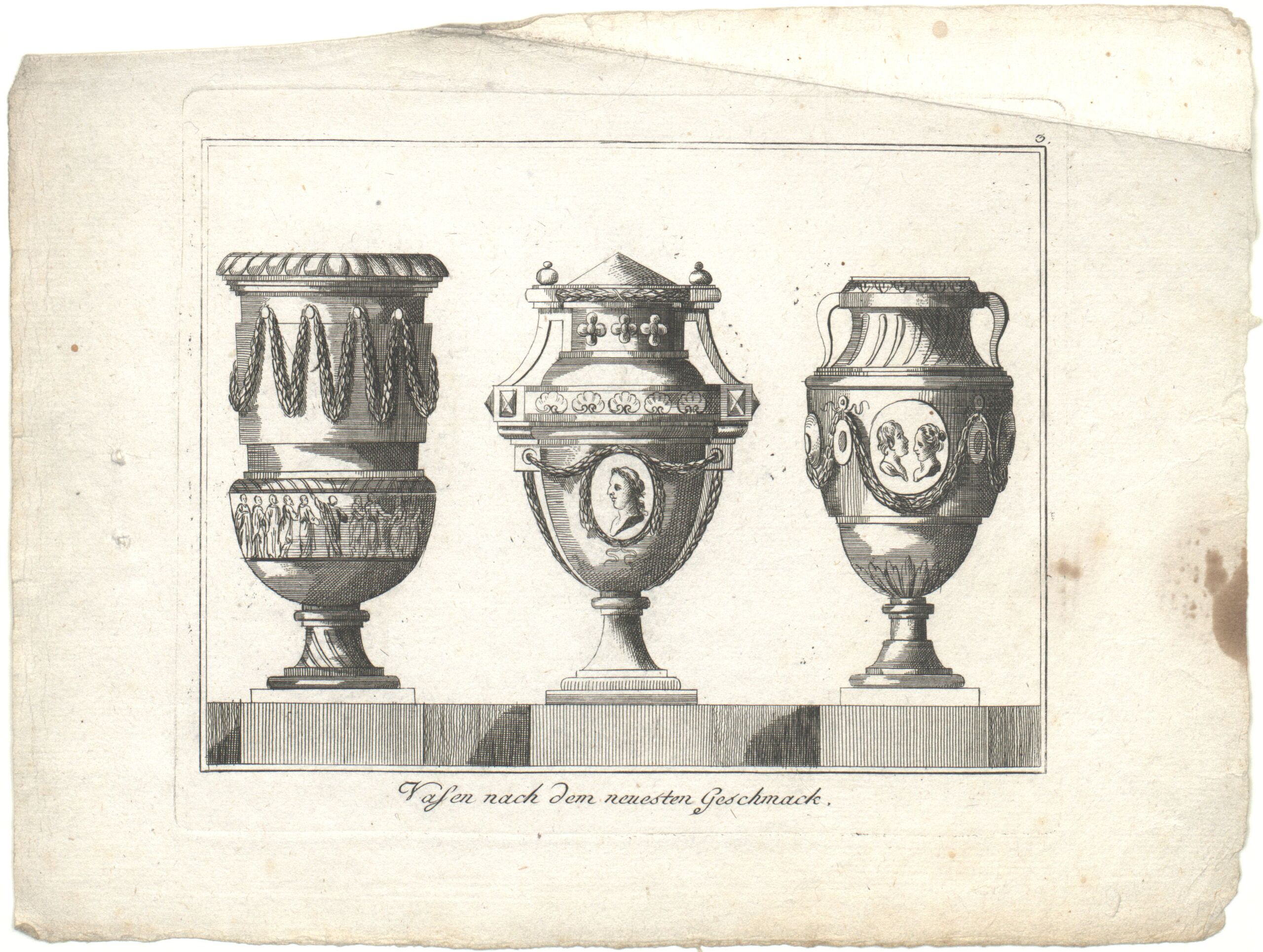 - Drei Vasen, Blatt 3 aus der Folge „Vasen nach dem neuesten Geschmack”, herausgegeben von Fietta et Comp. (vom Bearbeiter vergebener Titel)