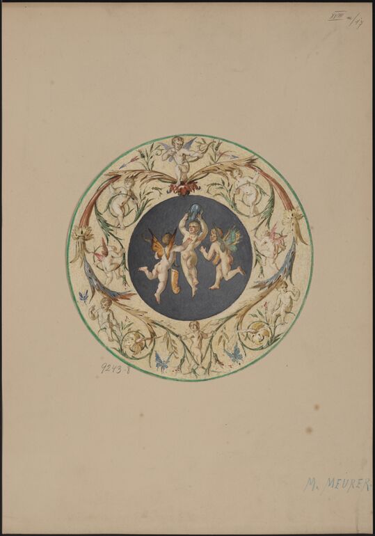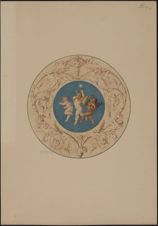- Ein Entwurf für einen Bucheinbanddeckel mit Wappen (vom Bearbeiter vergebener Titel)