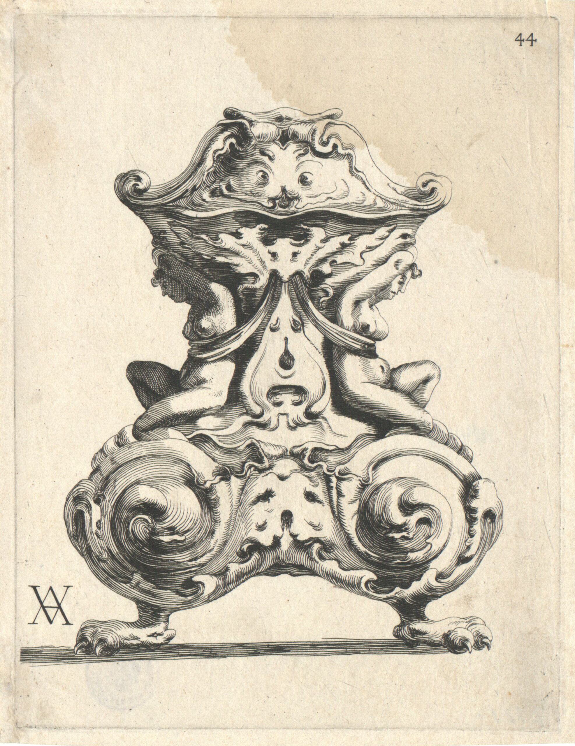 Ornamentstich, Ein Gefäß, Blatt 32 aus der Folge „Modelli Artificiosi ... Modelles Artificiels ... Constighe Modellen Van verscheyden silvere Vasen etc.“, herausgegeben von C. van Vianen, Adam van Vianen, MAK Inv.nr. KI 2321-21