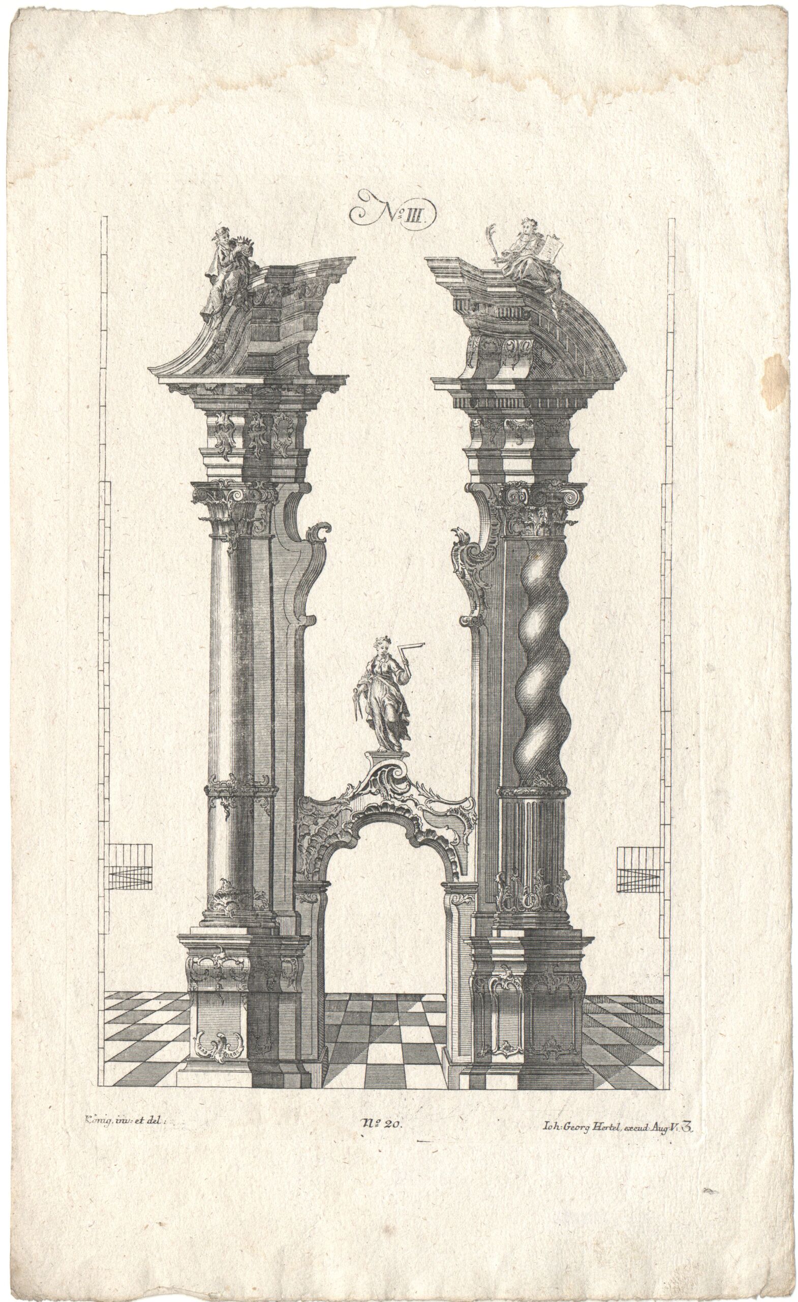 - Ein Portal, Blatt 3 aus einer Folge von Portalen, herausgegeben von J. G. Hertel, Verlagsnummer 20 (vom Bearbeiter vergebener Titel)