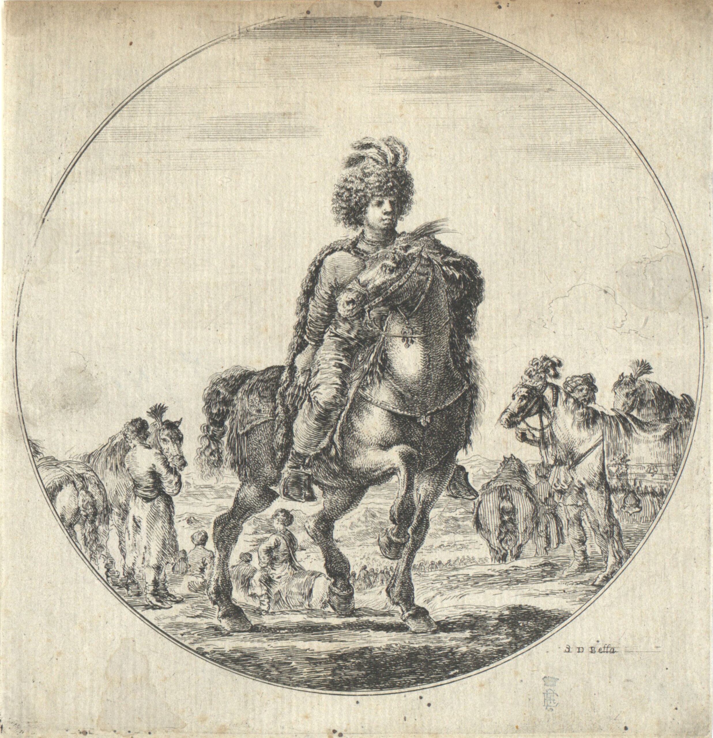 Druckgrafik, Ein Reiter, Blatt aus der Folge der Reiter, Stefano della Bella, MAK Inv.nr. KI 3594-2