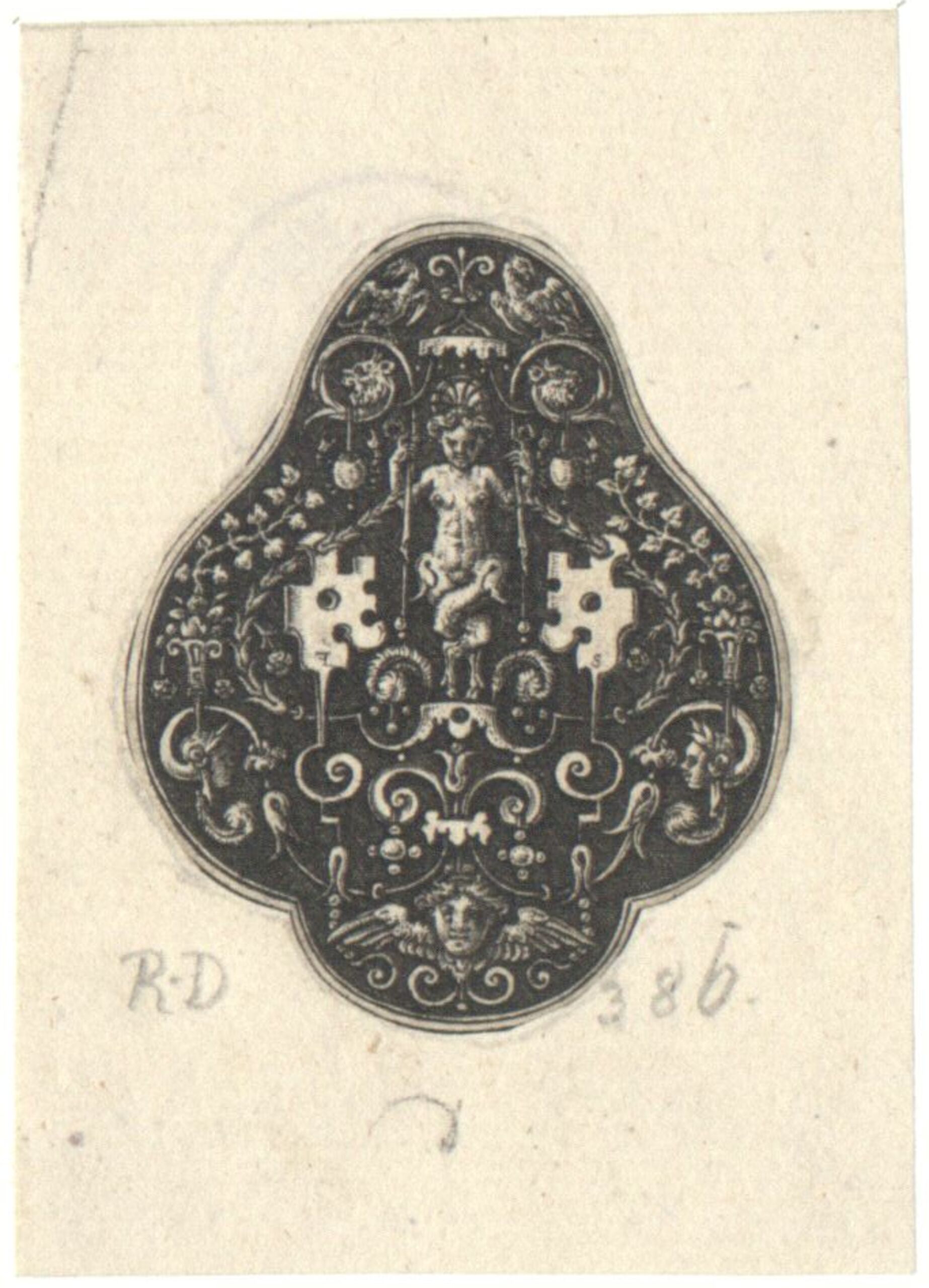 - Ornamentstich, Perseus, Blatt aus der Folge der ovalen Anhänger auf schraffiertem Grund (Robert- Dumesnil Nr. 385)