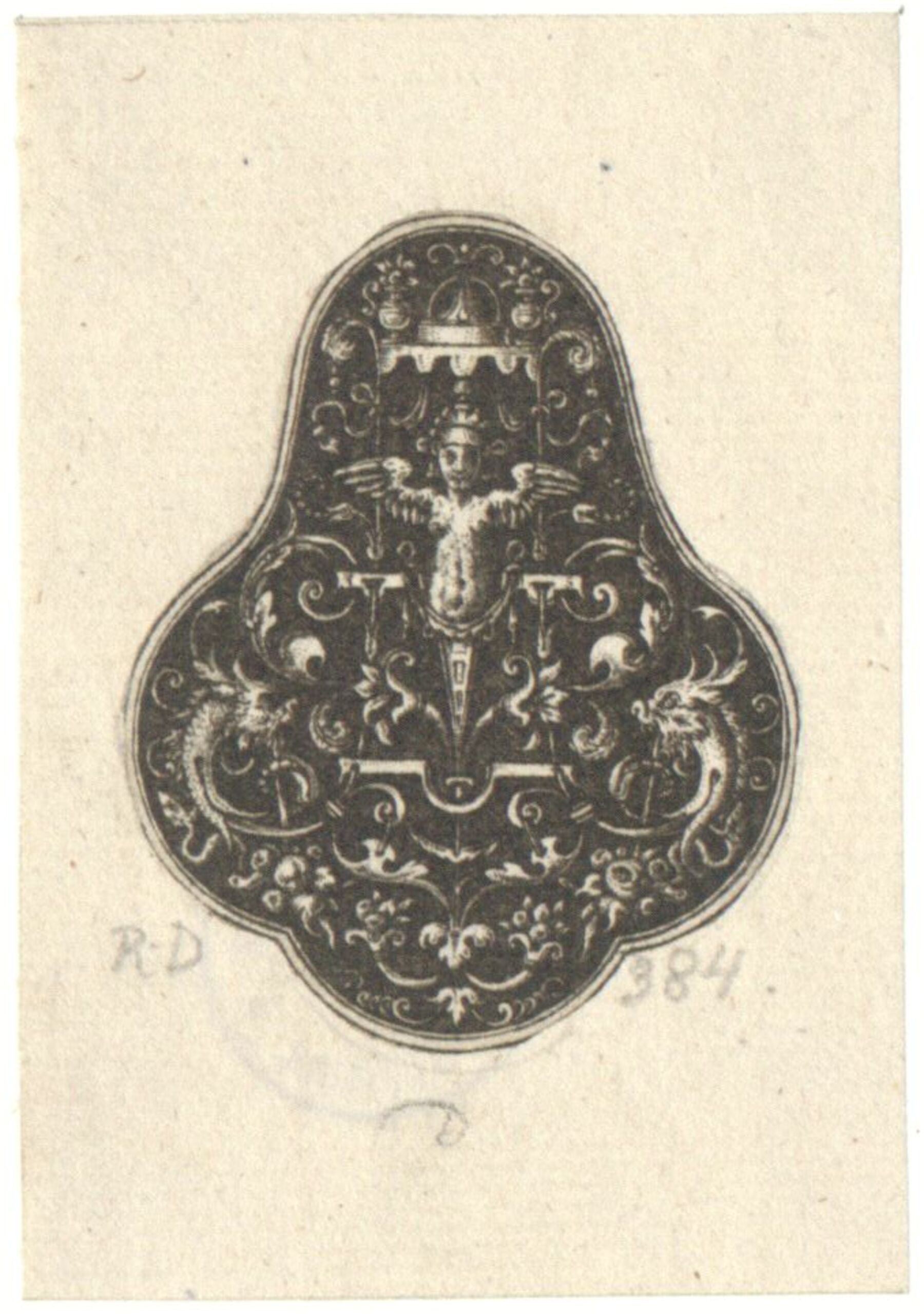 - Ornamentstich, Perseus, Blatt aus der Folge der ovalen Anhänger auf schraffiertem Grund (Robert- Dumesnil Nr. 385)