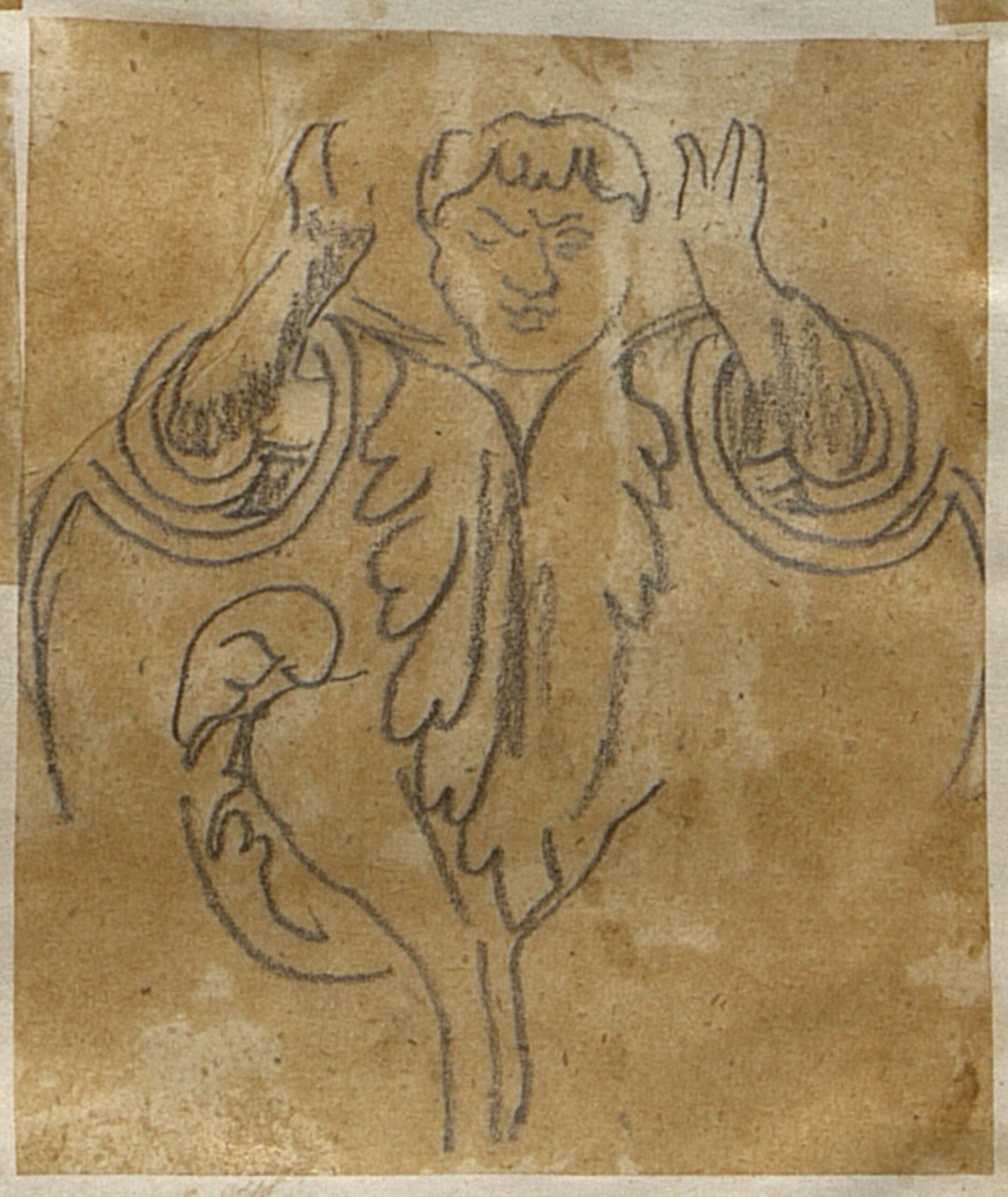 - Entwurf eines dekorativen Elements für eine Goldschmiedearbeit mit der Darstellung einer die Arme erhoben haltenden männlichen Figur von Wilhelm Hermann Haarstrick (vom Bearbeiter vergebener Titel)