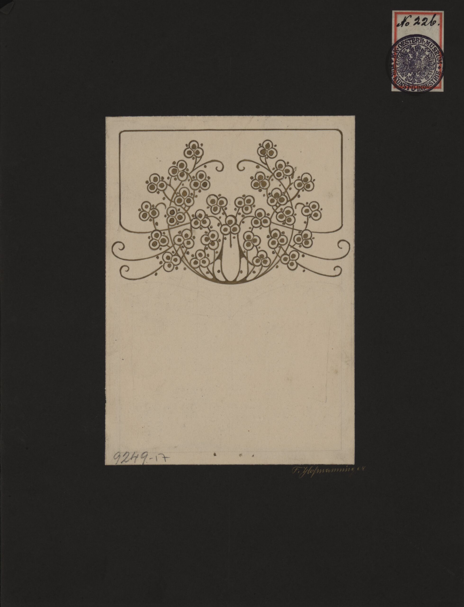- Stempel: Rot gerahmter Papieraufkleber mit N° 226 sowie Stempel des MAK