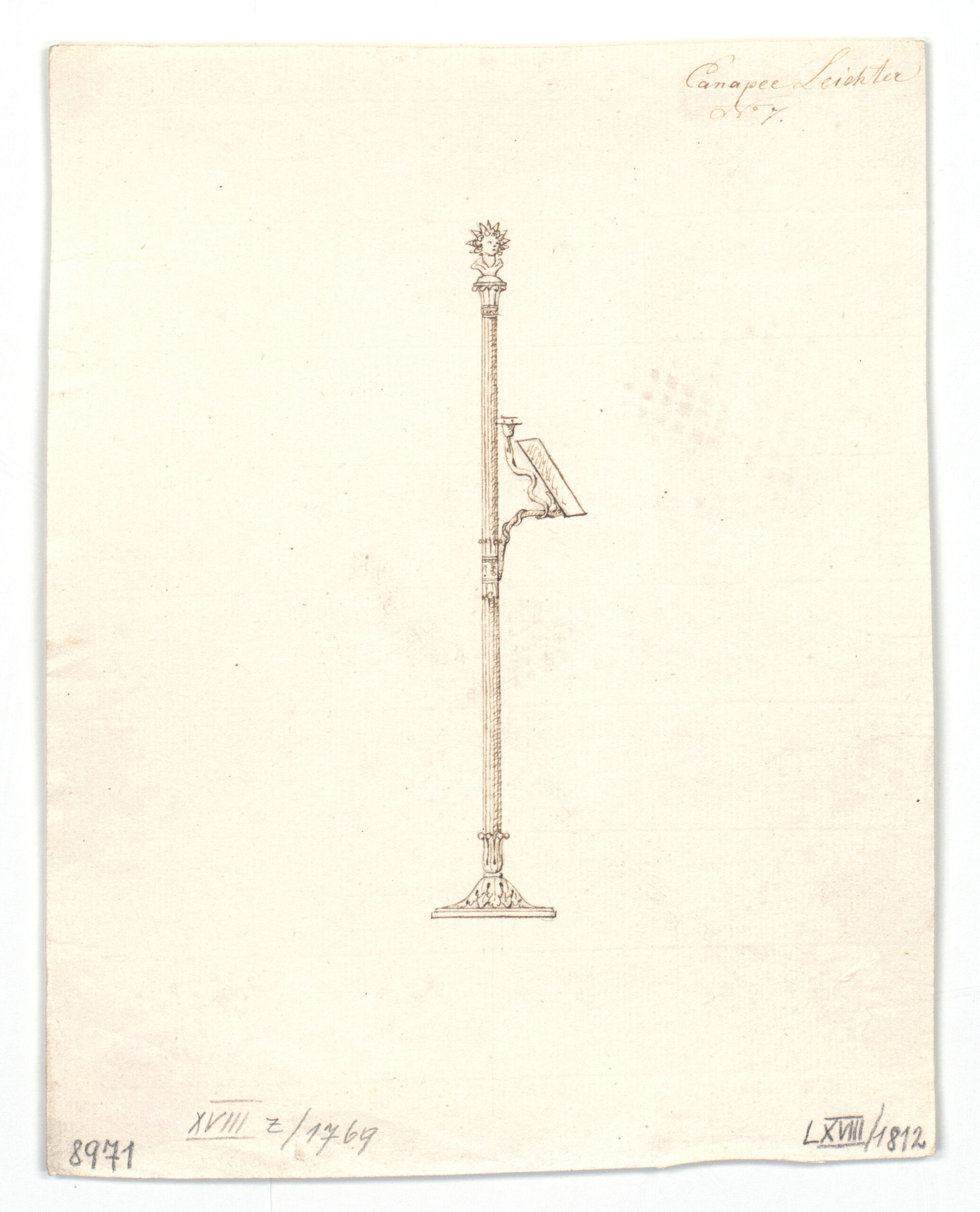 Möbelentwurf, Entwurf für einen Kandelaber, Joseph Ulrich Danhauser, MAK Inv.nr. KI 8971-1812