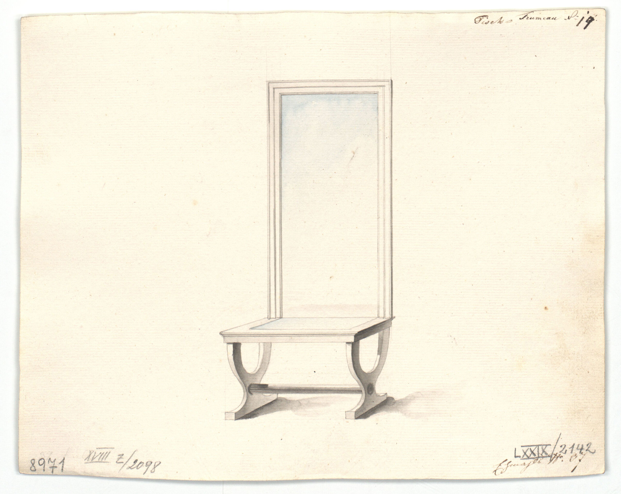 Möbelentwurf, Entwurf für einen Trumeautisch, Joseph Ulrich Danhauser, MAK Inv.nr. KI 8971-2142