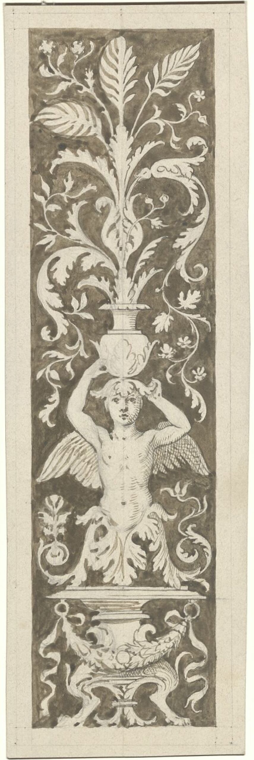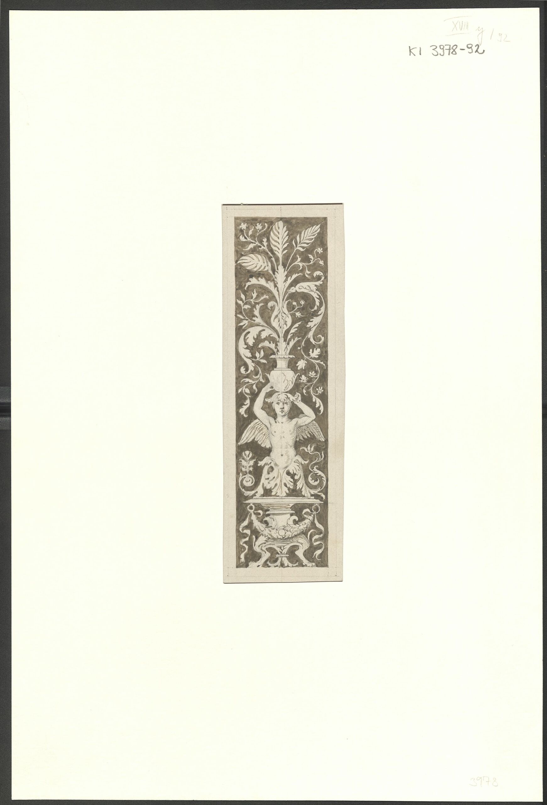 - Entwurf mit figürlicher Darstellung, Vase und Rankenornamentik (vom Bearbeiter vergebener Titel)