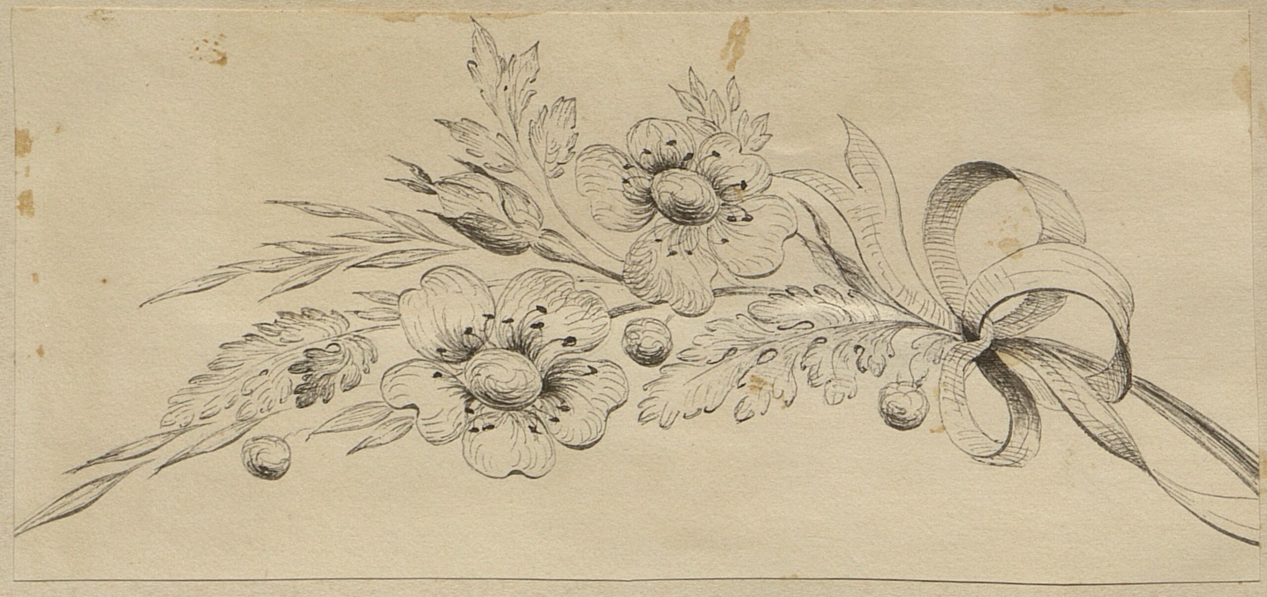 - Entwurf zu einer Brosche in Form eines Blütenzweigs mit Beeren und gebundener Schleife auf der rechten Seite von Wilhelm Hermann Haarstrick (vom Bearbeiter vergebener Titel)