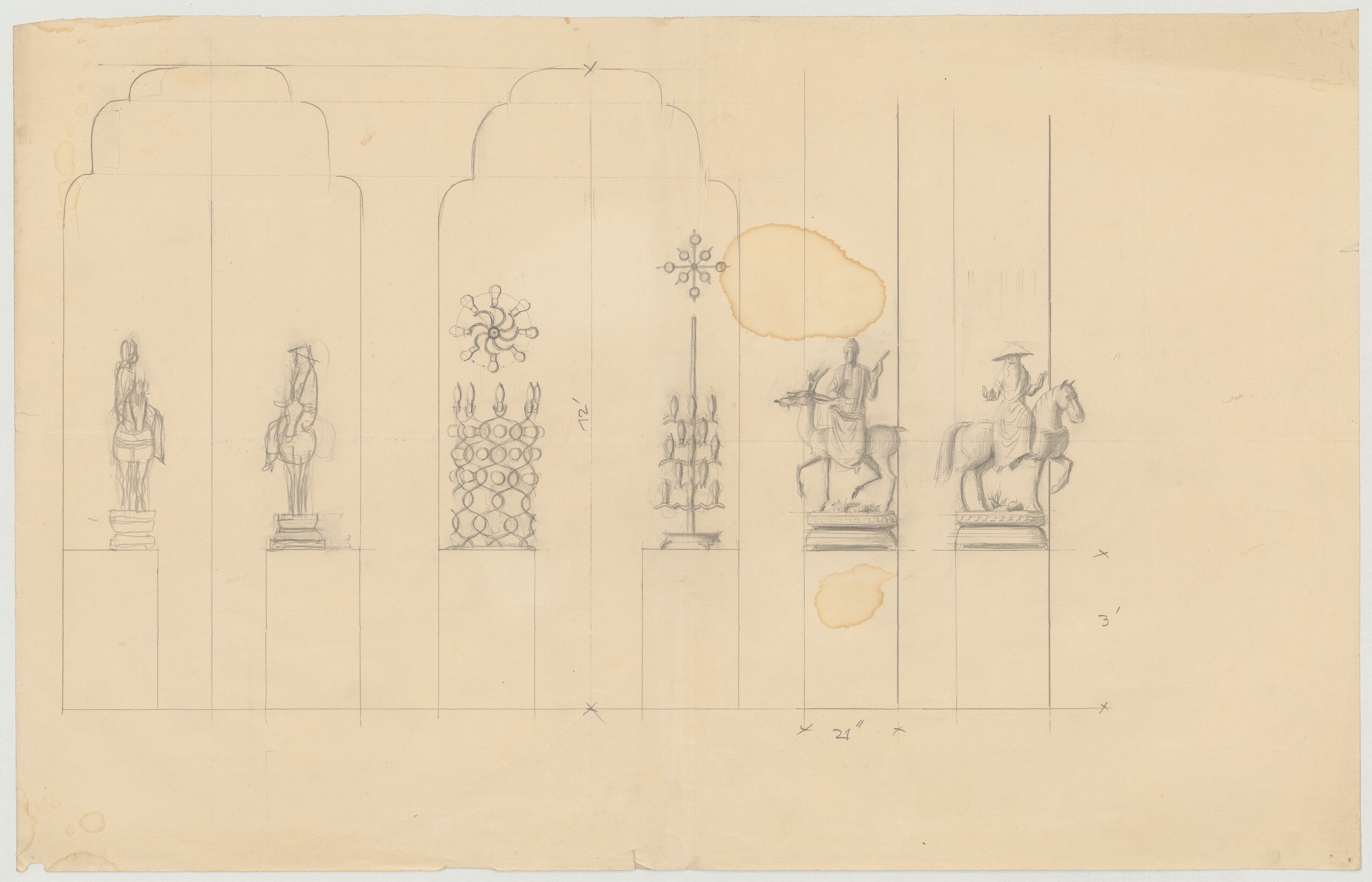 - Entwurfszeichnung für Nischen und Sockel zur Präsentation von Skulpturen (vom Bearbeiter vergebener Titel)