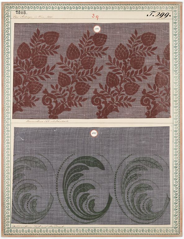 - Beschriftung (Vorderseite) : Von dem Seidenzeugweber Matz in Wien, 1831. / Façonnirte Seidenstoffe.