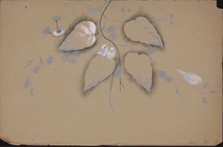Fächerentwurf mir Schmetterlingen und floralem Dekor sowie Ornamentskizzen in Bleistift auf dem Verso.