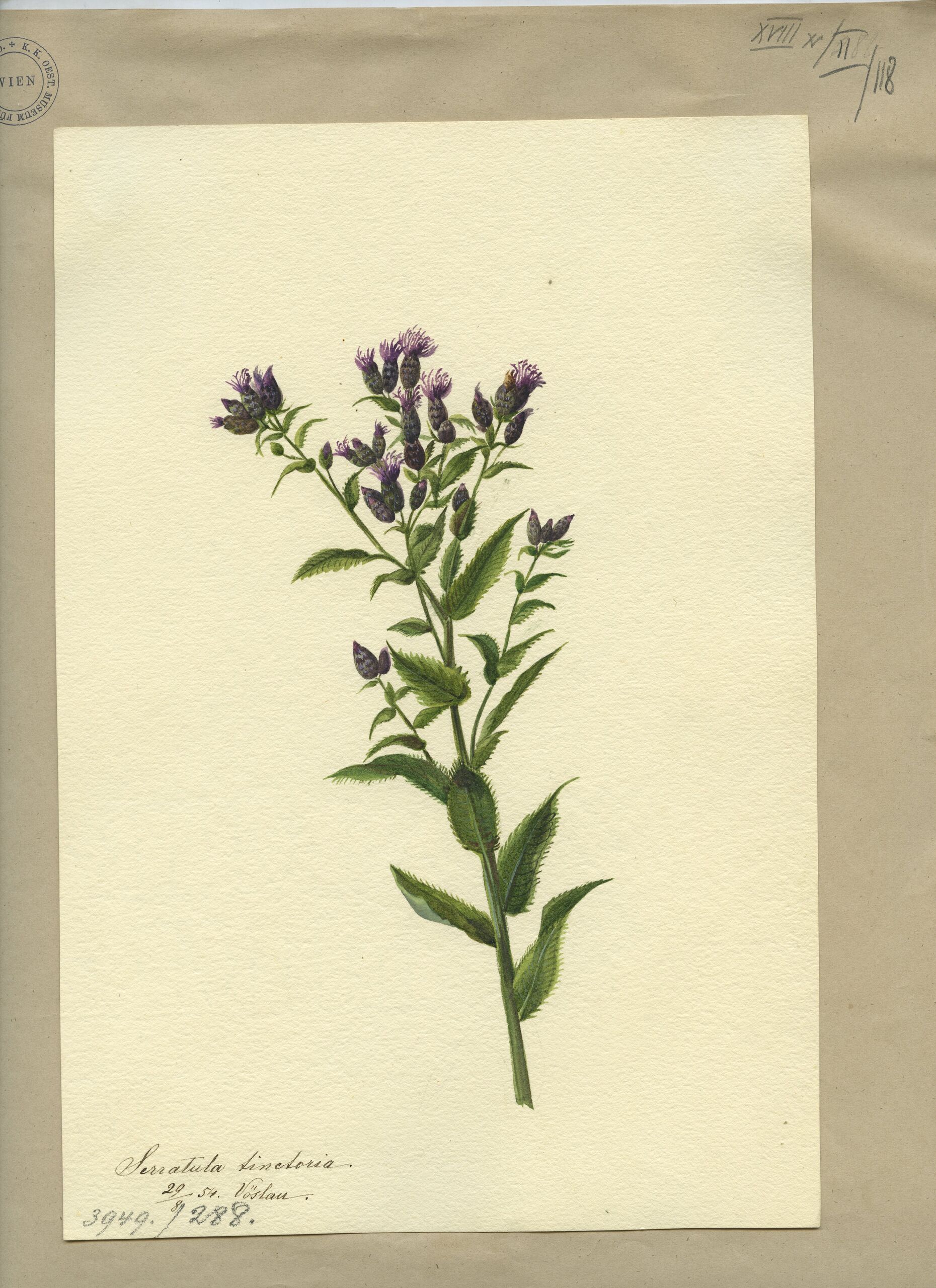 - Text am Objekt: Serratula tinctoria / 29/8 54 Vöslau. [Feder in Braun]