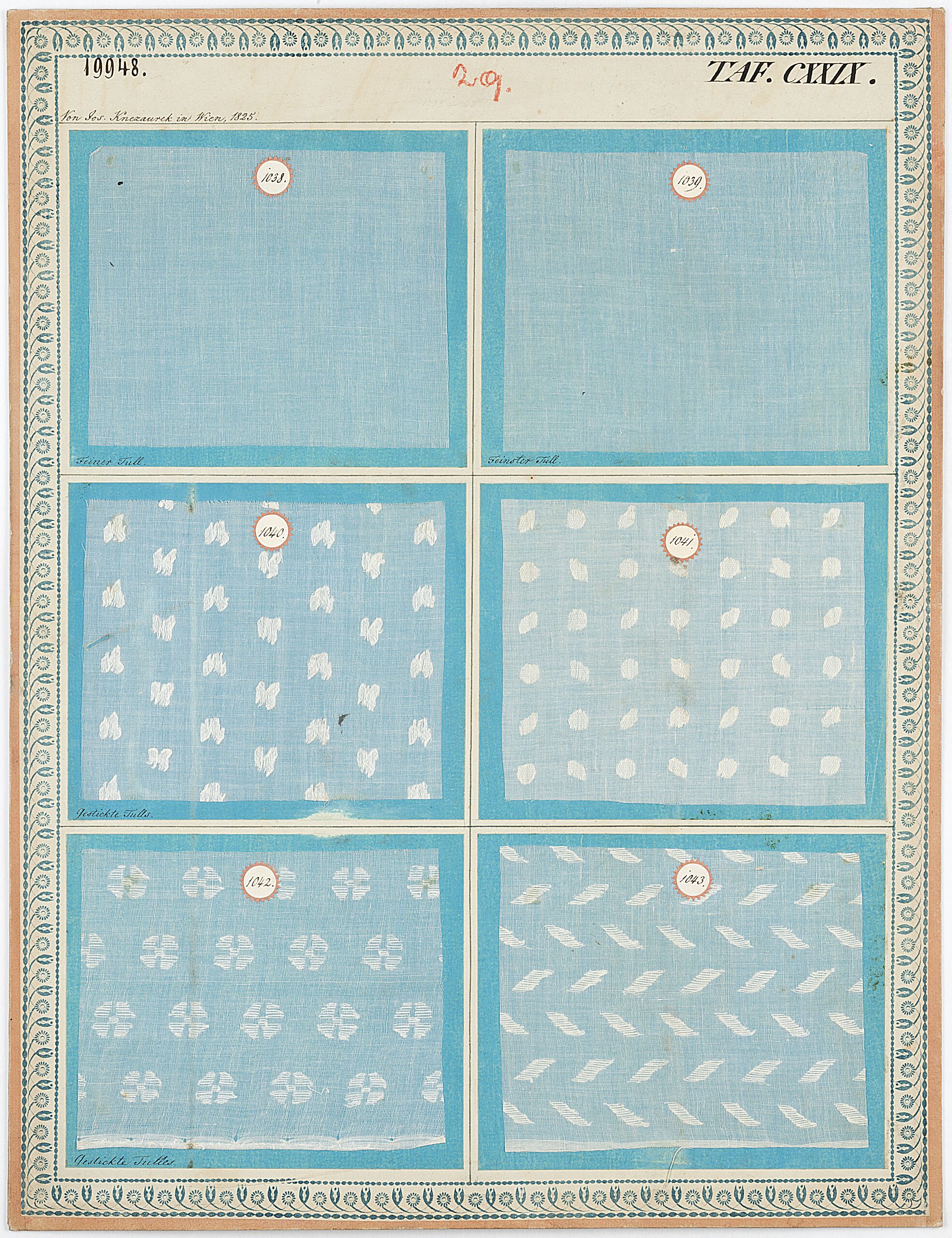 Mustertafel, Feiner Tull. Feinster Tull. Gestickte Tulls. Gestickte Tulles, Josef Kniezaurek, MAK Inv.nr. TGM 19948