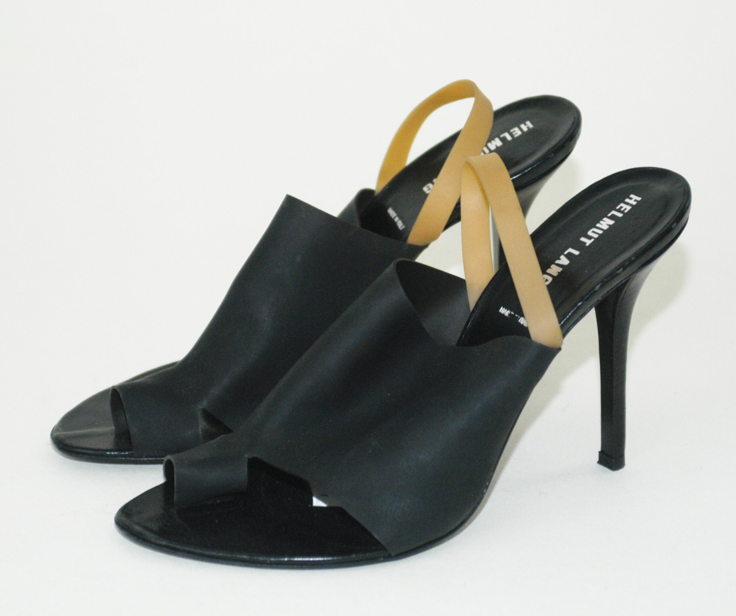 Schuh, Fersenriemen Sandalette (Paar) mit Gummiriemen - schwarz/beige, Helmut Lang (Firma), MAK Inv.nr. LNI 265-1-2