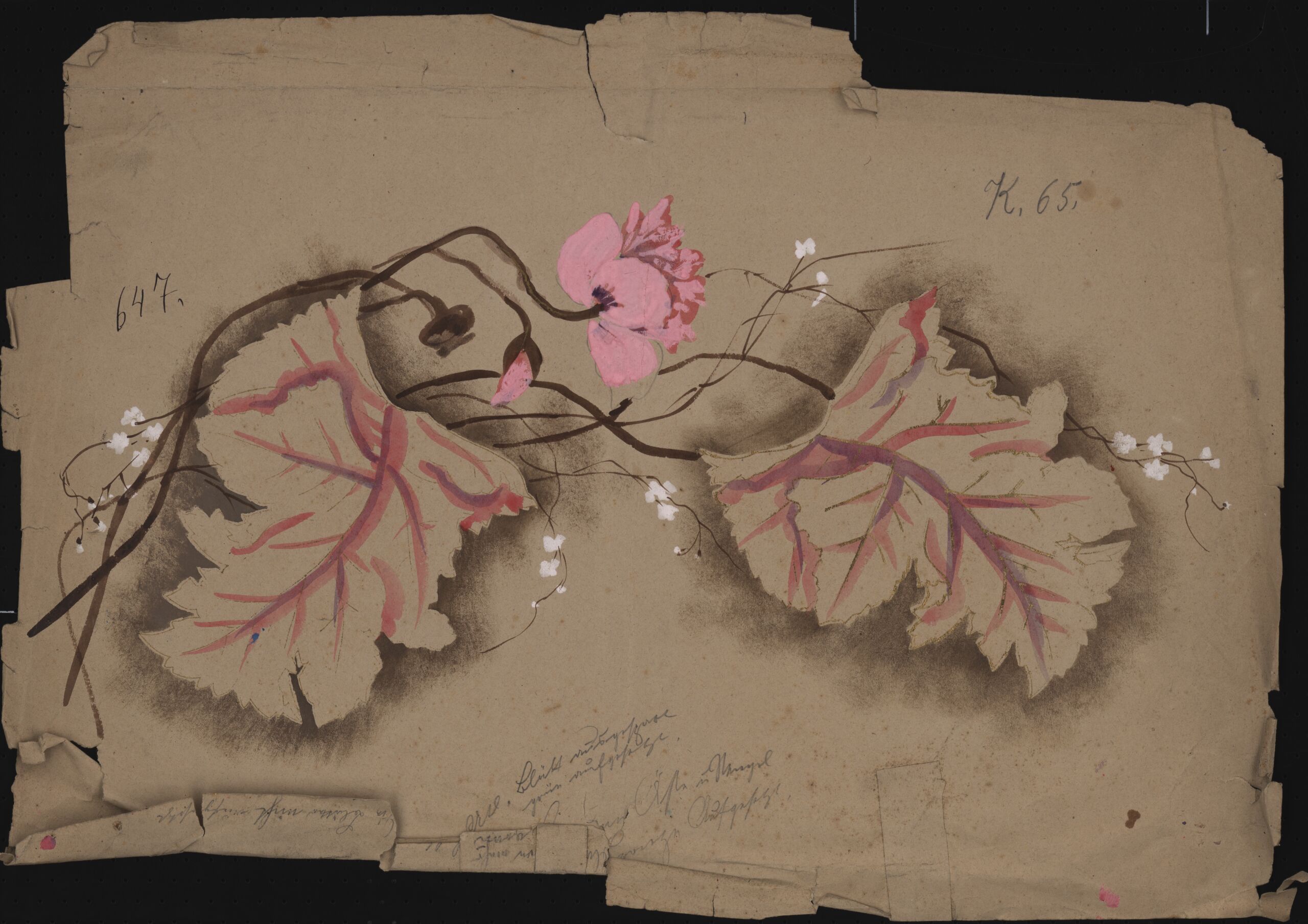 Flächenmuster mit floralem Dekor auf Recto und Verso sowie Vögeln auf dem Recto.