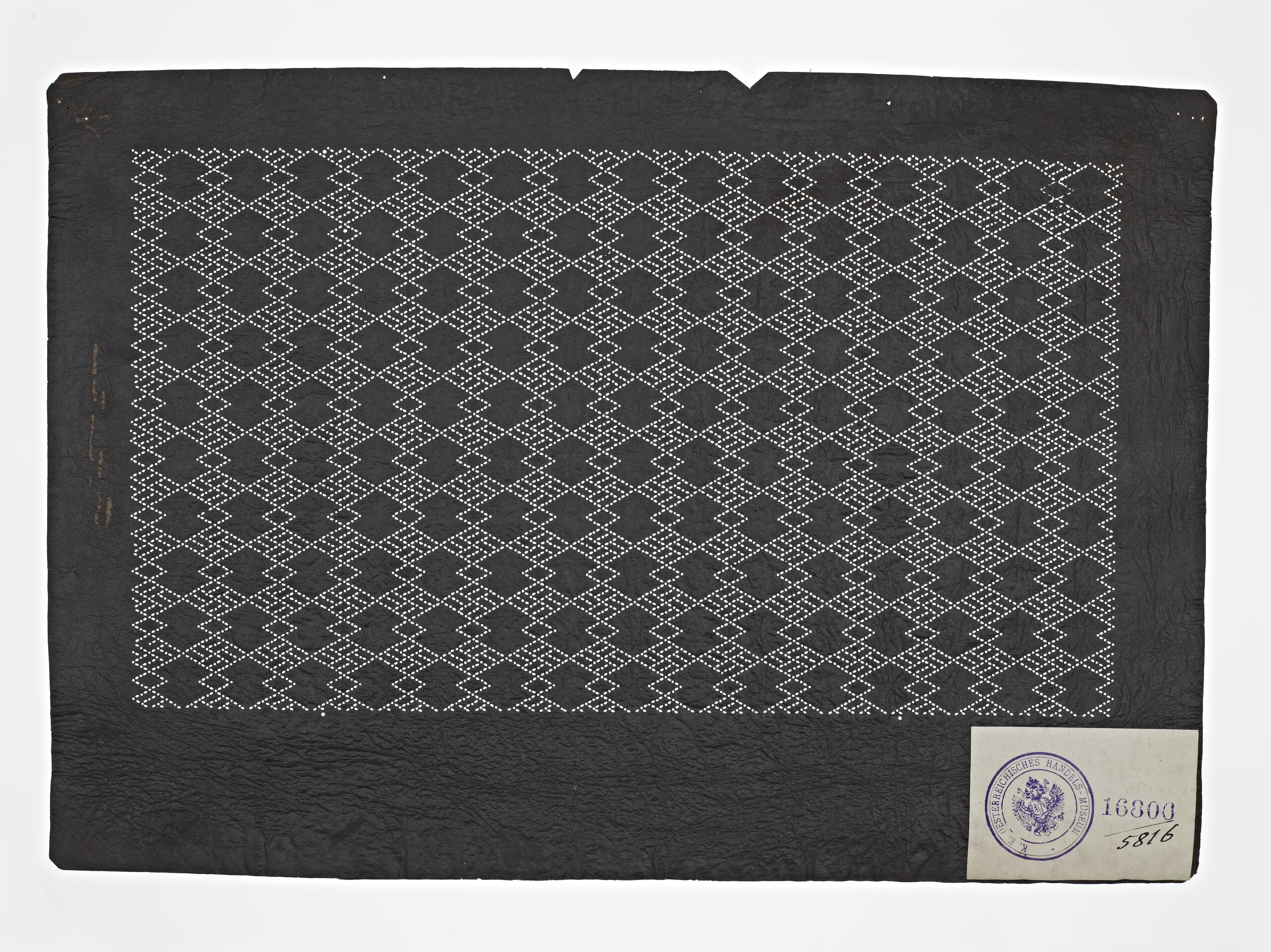 Färbeschablone (Katagami 型紙), Flächenmuster (waritsuke monyō 割付文様): geometrisches Muster mit Rauten, Anonym, MAK Inv.nr. OR 3925-5816