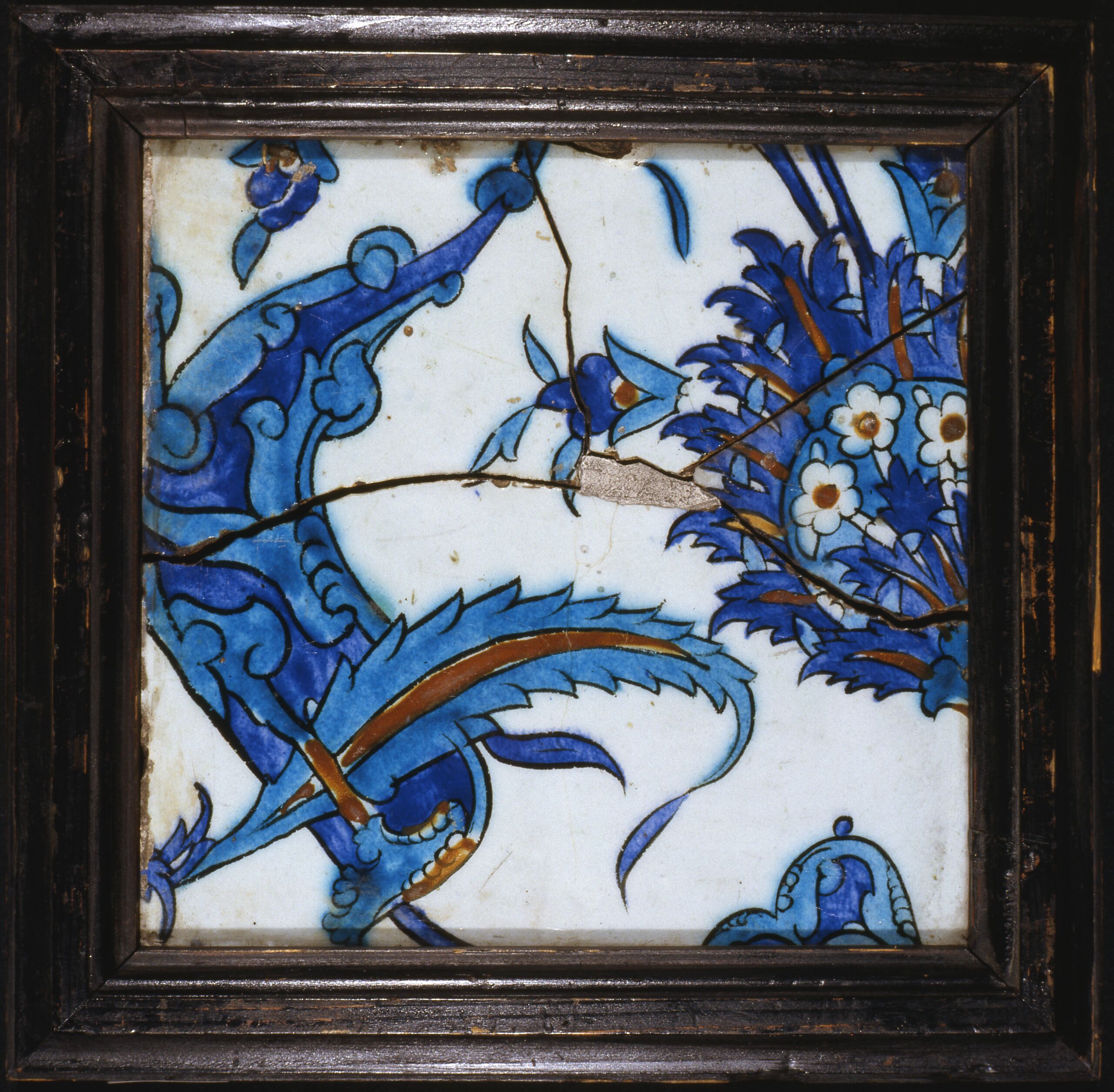 Quarz-Fritte-Keramik mit Bemalung in Kobaltblau,