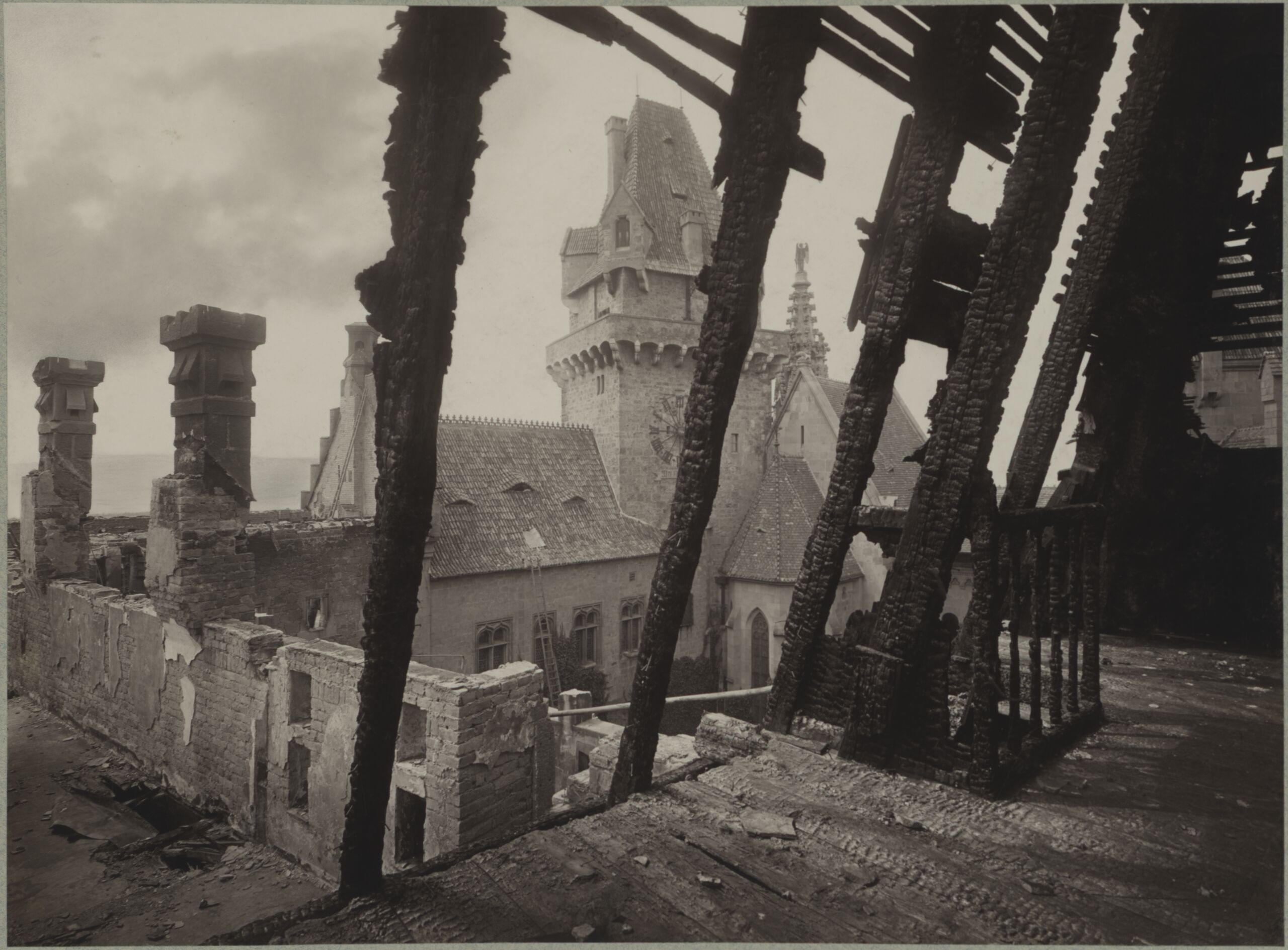 Fotografie, Fotografie der Burg Kreuzenstein in Richtung Süden nach einem Brand vom 25. April 1915, Wilhelm J. Burger, MAK Inv.nr. BI 20806-22