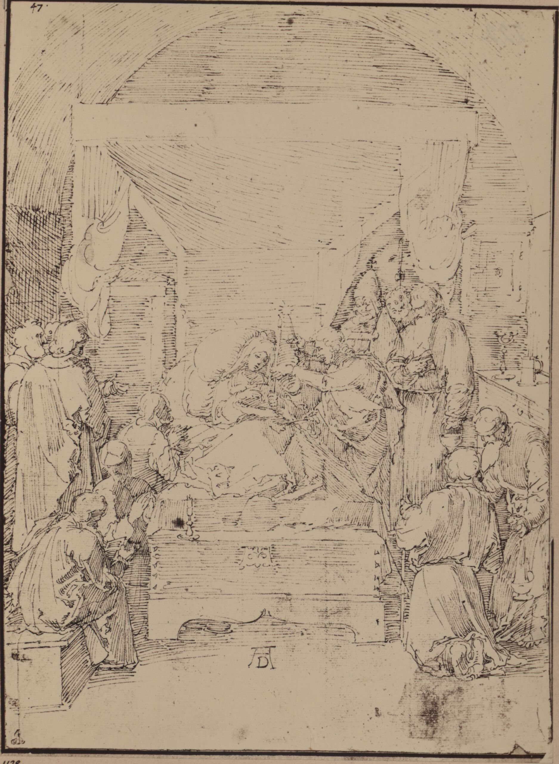 - Fotografie der Federzeichnung "Der Tod Mariae" von Albrecht Dürer (vom Bearbeiter vergebener Titel)