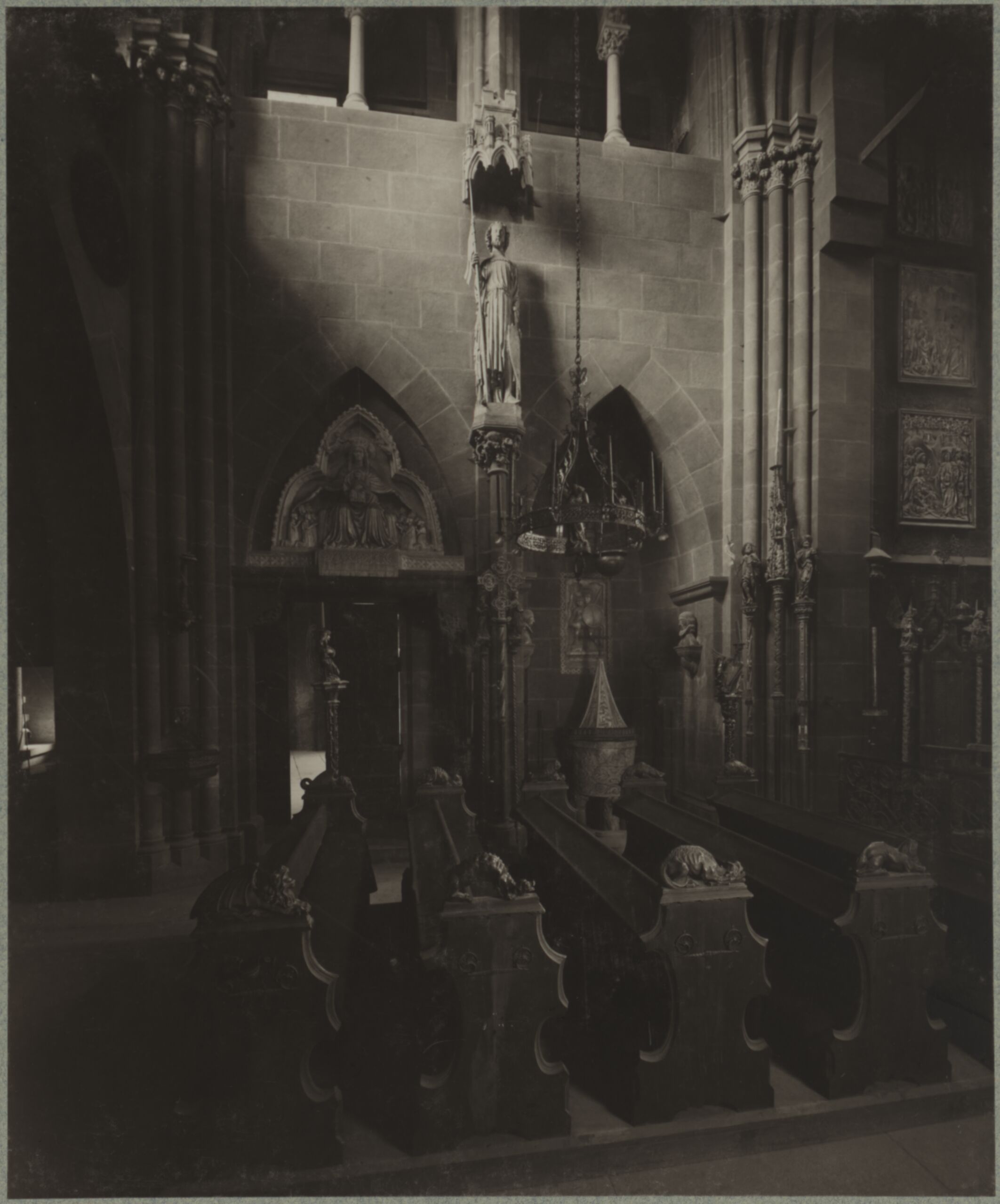 - Text am Objekt: [Untersatzkarton, rechts oben]: Ergänzungsblatt 20[Untersatzkarton, mittig unten]: BURG KREUZENSTEIN, / Kapelle. Im Norden gelegene Wand. / Wilh. Burger fecit.