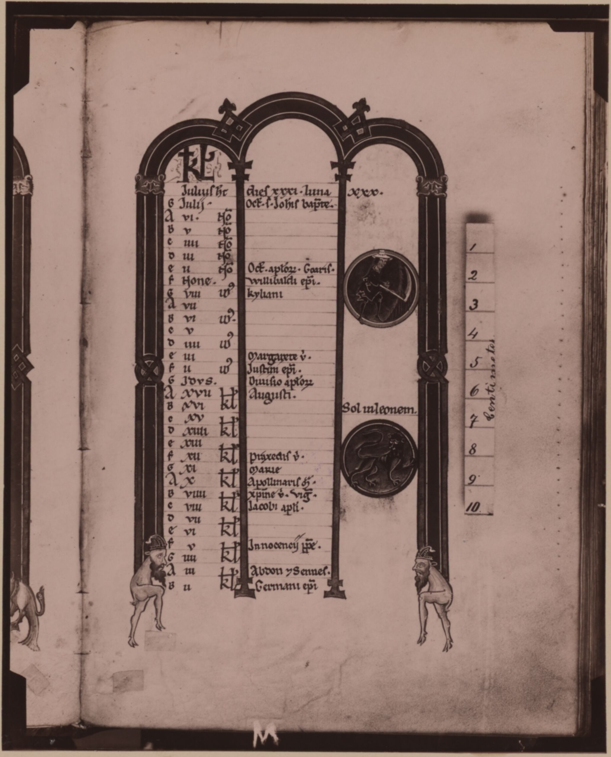 Fotografie, Fotografie der Seite "Juli" aus einem Kalendarium aus dem 13. Jh., in einem Gebetsbuch des Stiftes Melk in Niederösterreich, Victor Angerer, MAK Inv.nr. KI 5769-116
