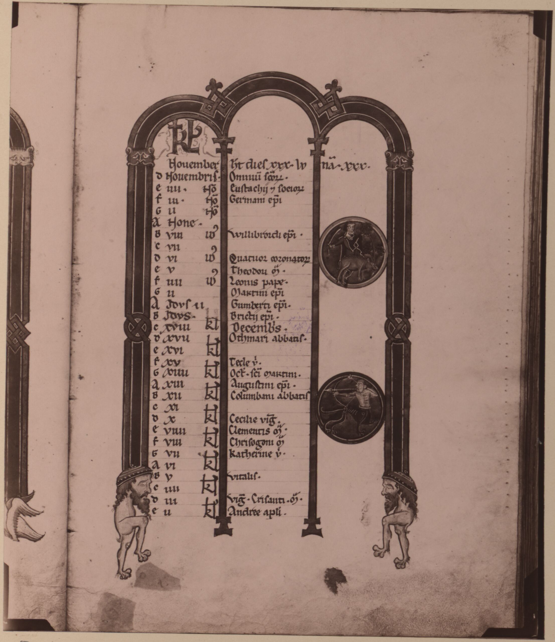 Fotografie, Fotografie der Seite "November" aus einem Kalendarium aus dem 13. Jh., in einem Gebetsbuch des Stiftes Melk in Niederösterreich, Victor Angerer, MAK Inv.nr. KI 5769-120
