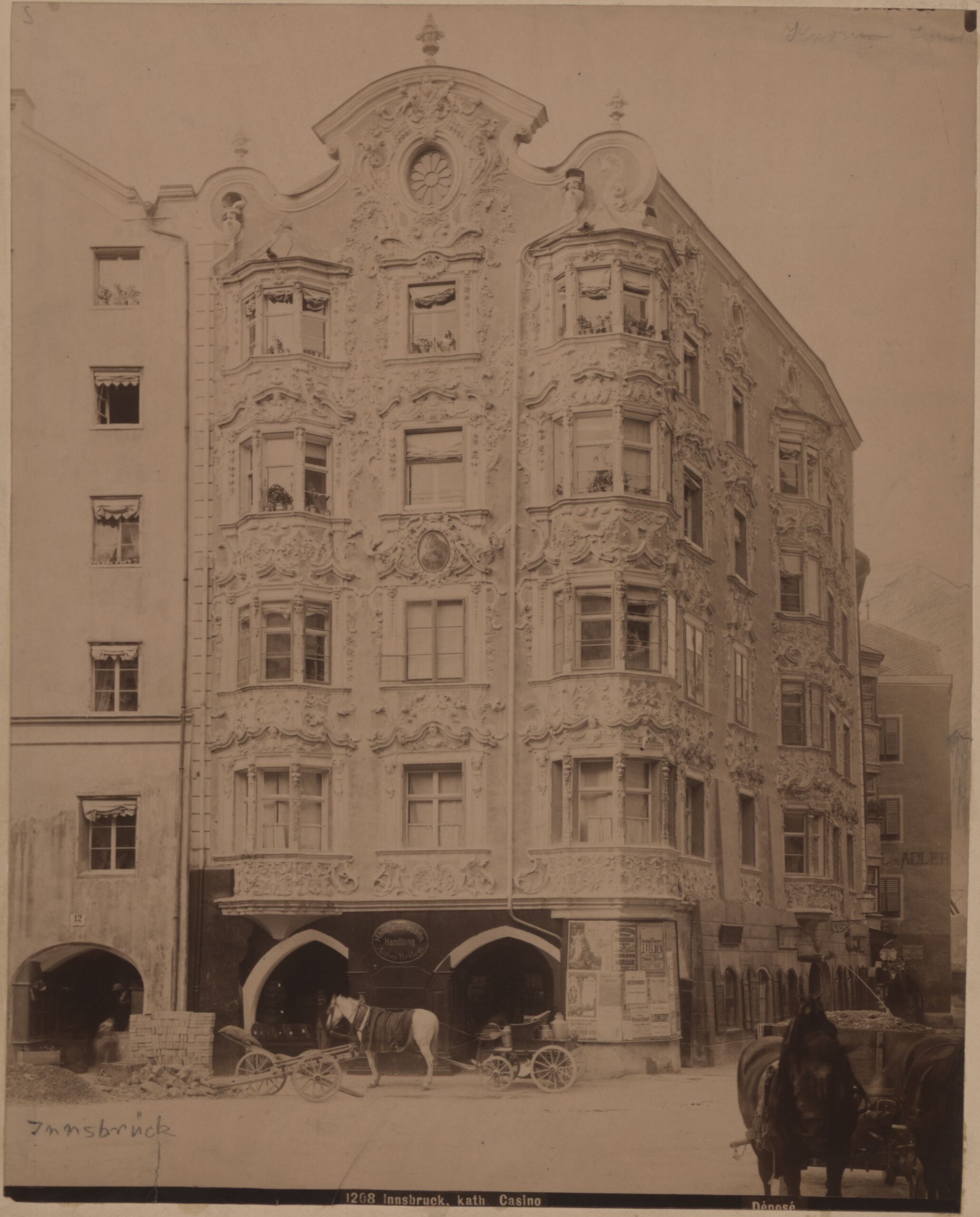 - Text am Objekt (mittig unten) : 1208 Innsbruck, kath. Casino / Déposé