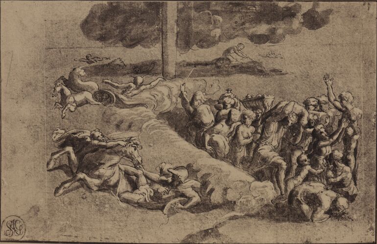 Fotografie, Fotografie des Kupferstichs der "Philosophia" in der Stanza della Segnatura im Vatikan von Raffael, Anonym, MAK Inv.nr. KI 16399-30